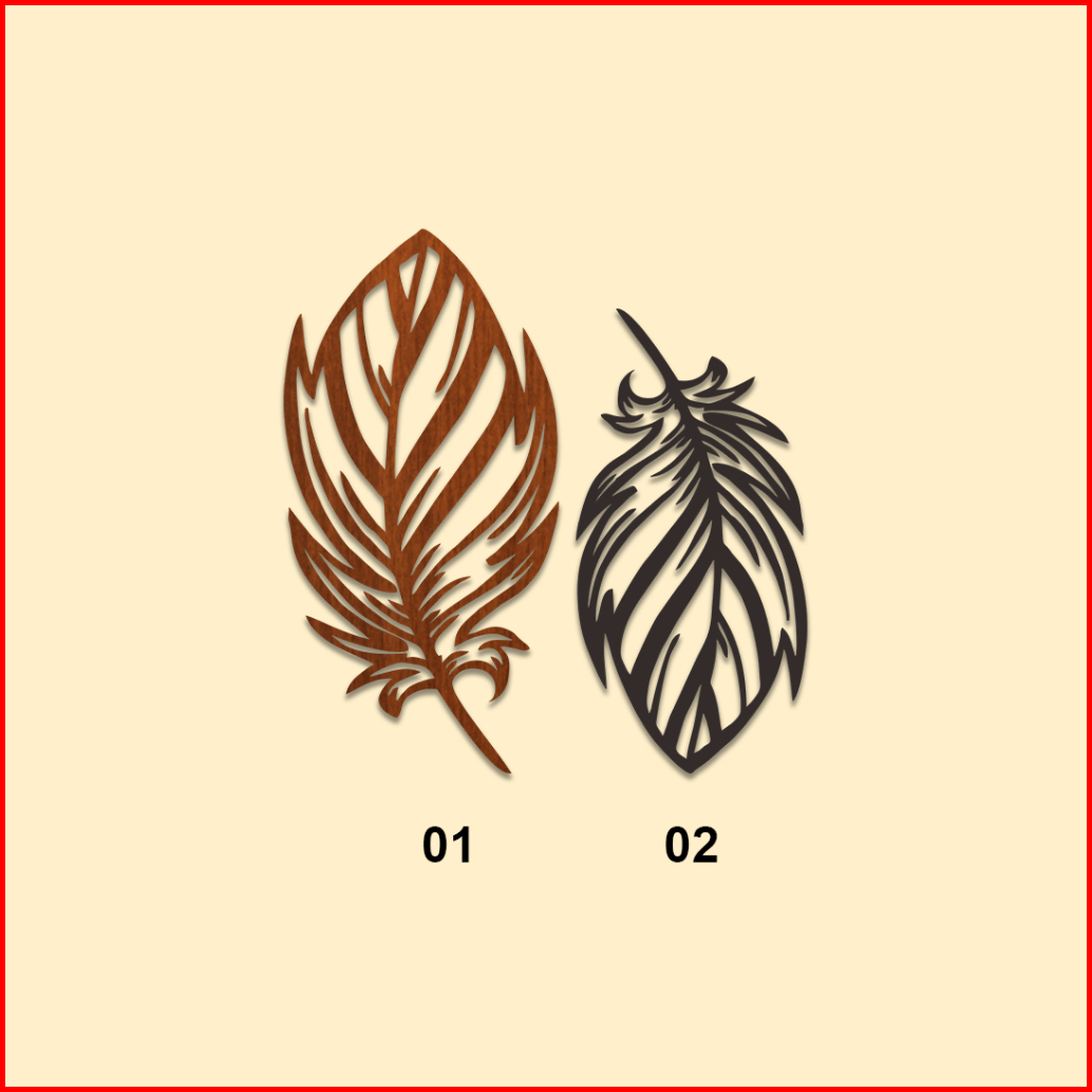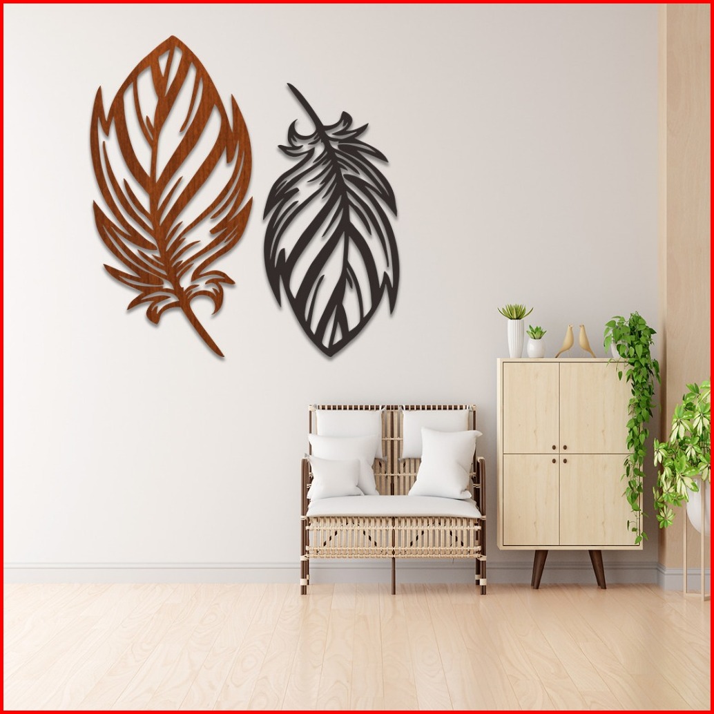Hiasan Dinding Kayu Feather Leave Geometris Dekorasi Dinding Wall Art Laser Cut Vintage