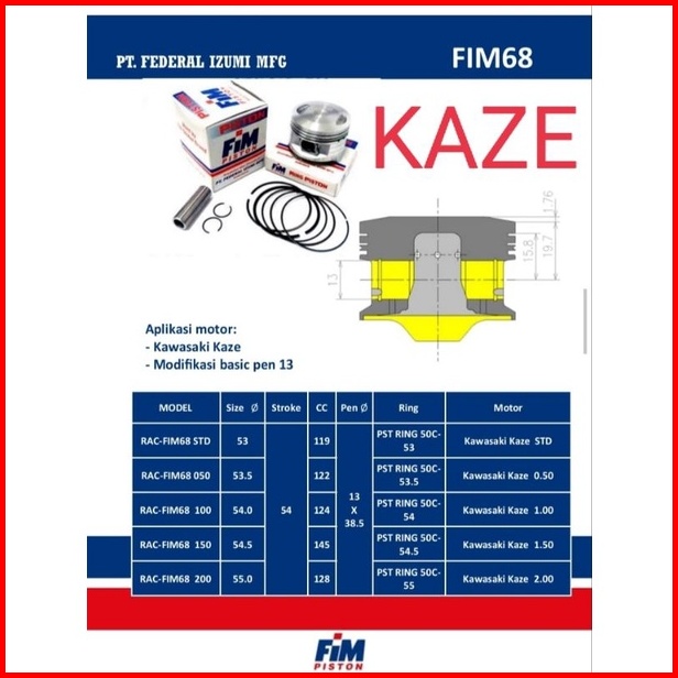 Piston Fim Kawasaki Kaze 53 53.5 54 54.5 55 56 Bisa Untuk Rubahan Jupiter Z Vega Supra Karisma Grand Revo Blade Beat Sco