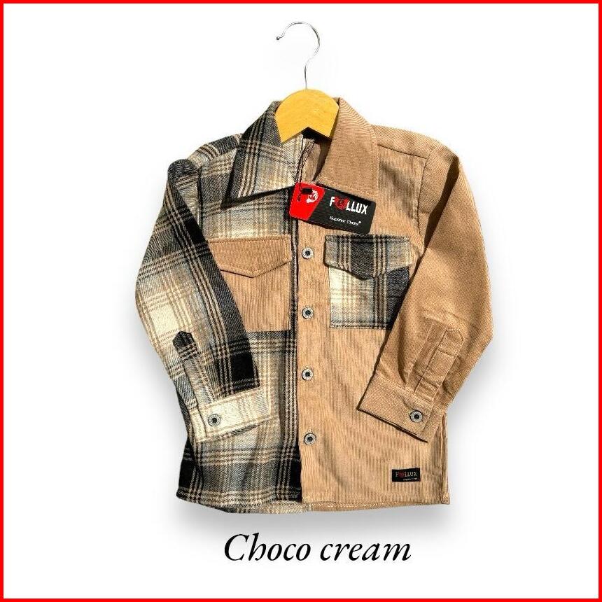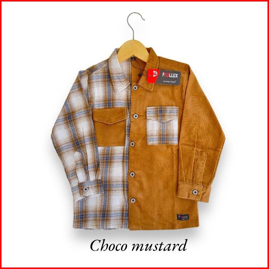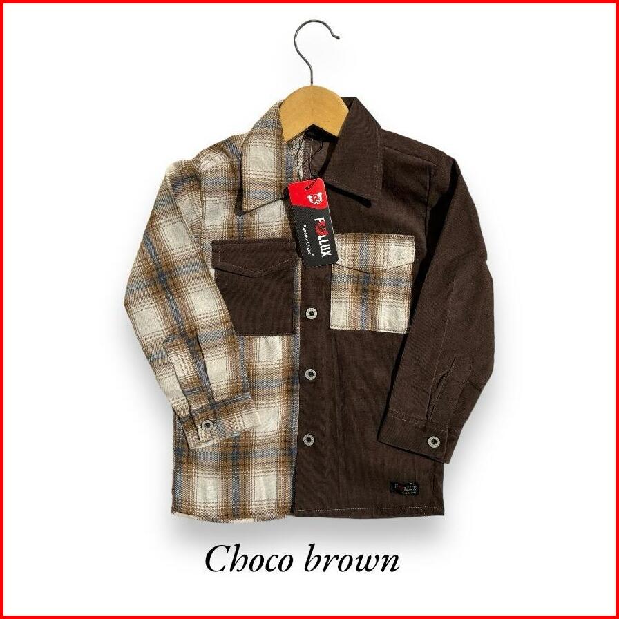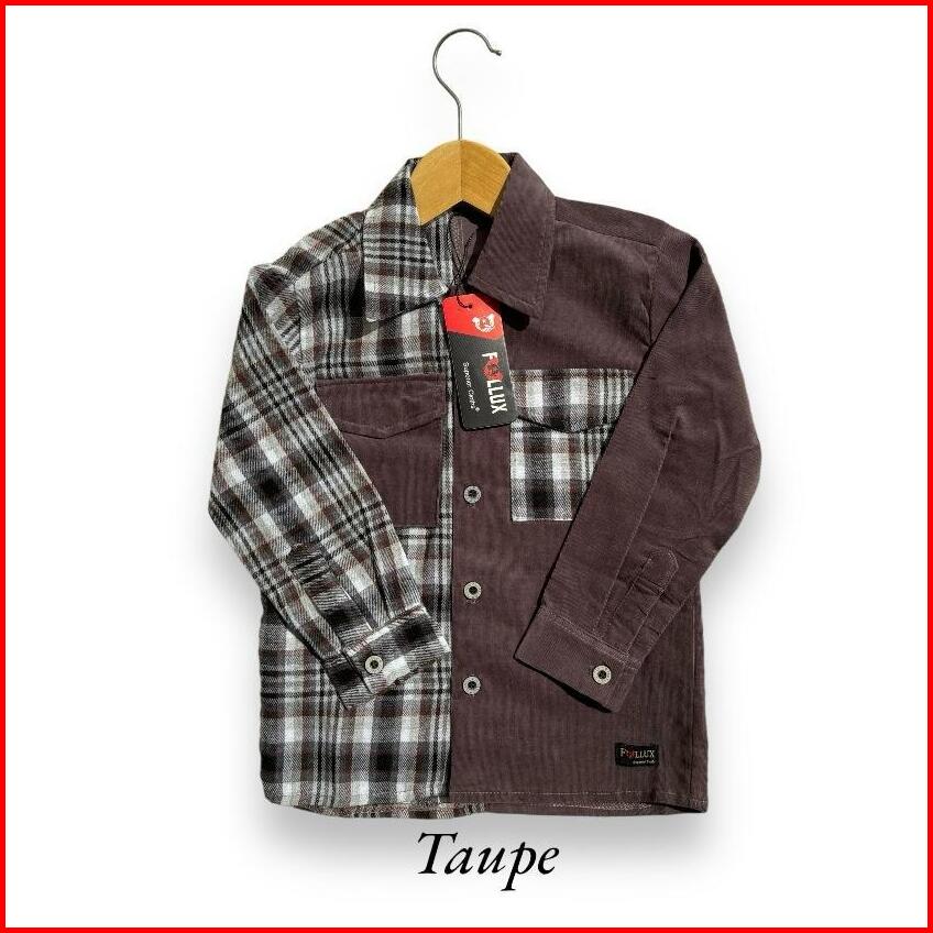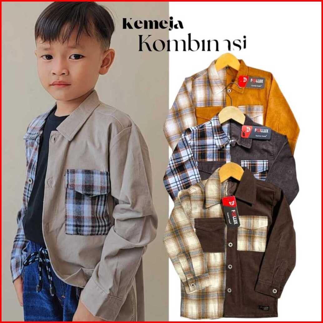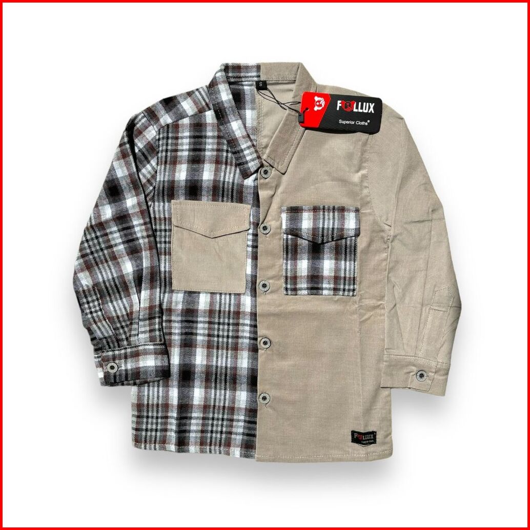 Kemeja Anak Laki-laki Lengan Panjang Flanel Shirt Kombinasi Corduroy Casual Usia 1-10 Tahun