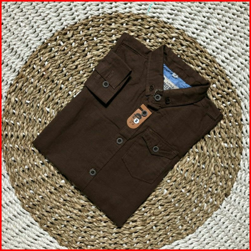 Kemeja Anak Lengan Panjang Warna Choco Kemeja Anak Laki-laki Bahan Katun Uniqlo Premium