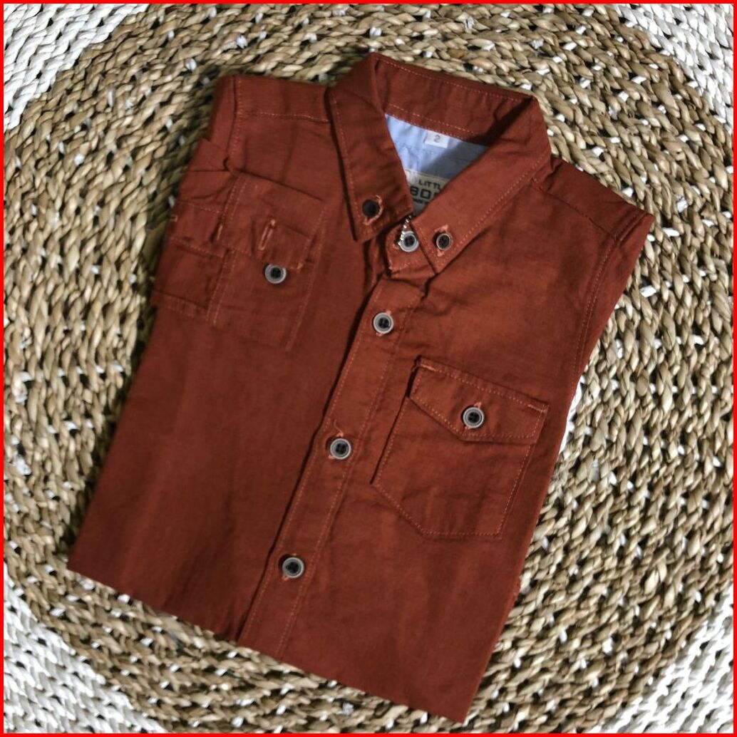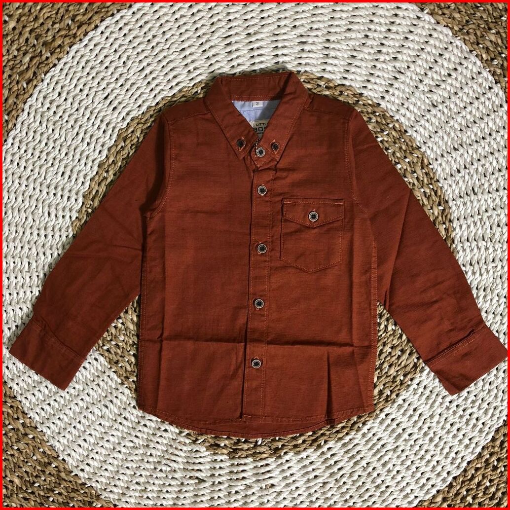 Kemeja Anak Laki Lengan Panjang Bahan Katun Premium Warna Caramel Anak Umur 1 Sampai 16 Tahun