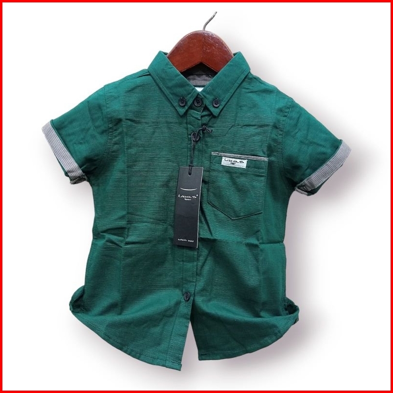 Kemeja Lengan Pendek Anak Anak 1-13 Tahun Warna Ijo Botol Premium