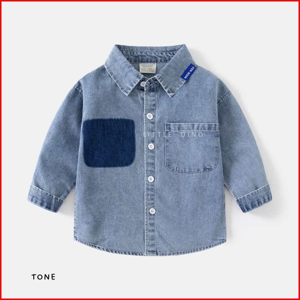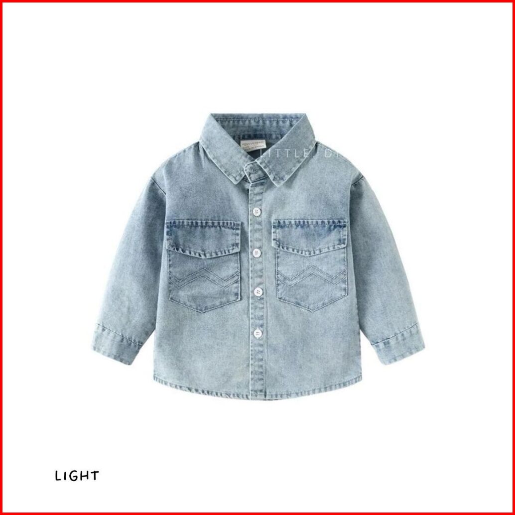 Littledino - Kemeja Jeans Anak Laki-laki Lengan Panjang Jeans