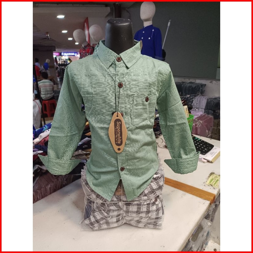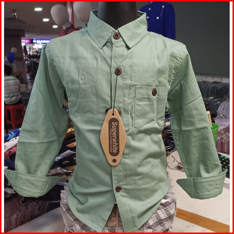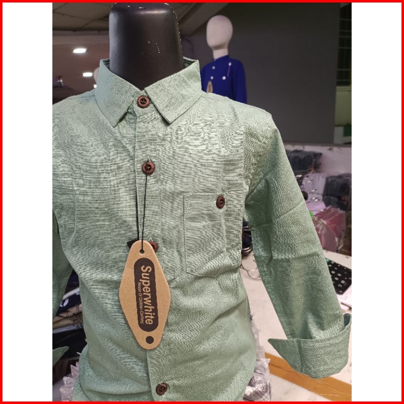 Kemeja Anak Lengan Panjang Warna Sage Green Terbaru 1-14thn