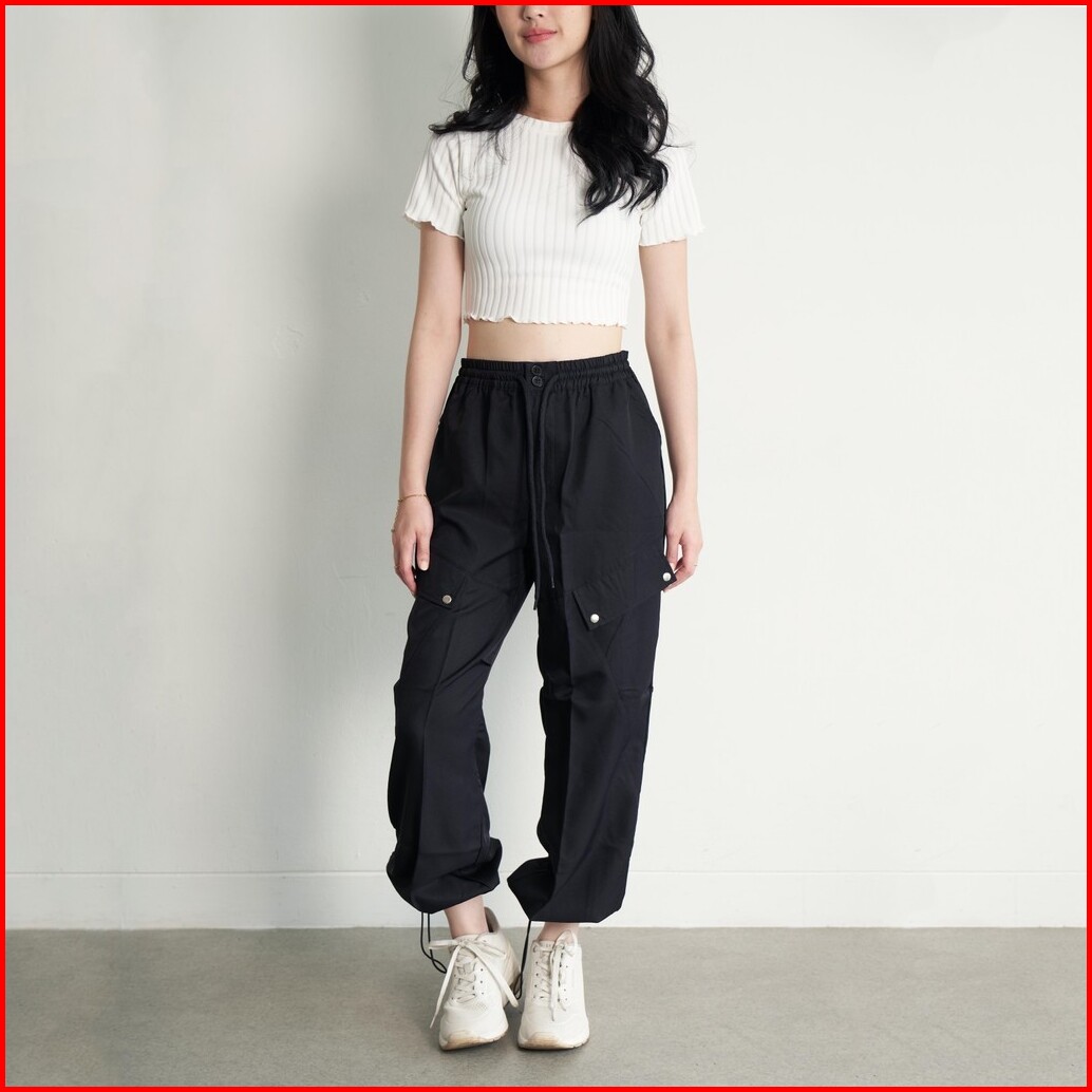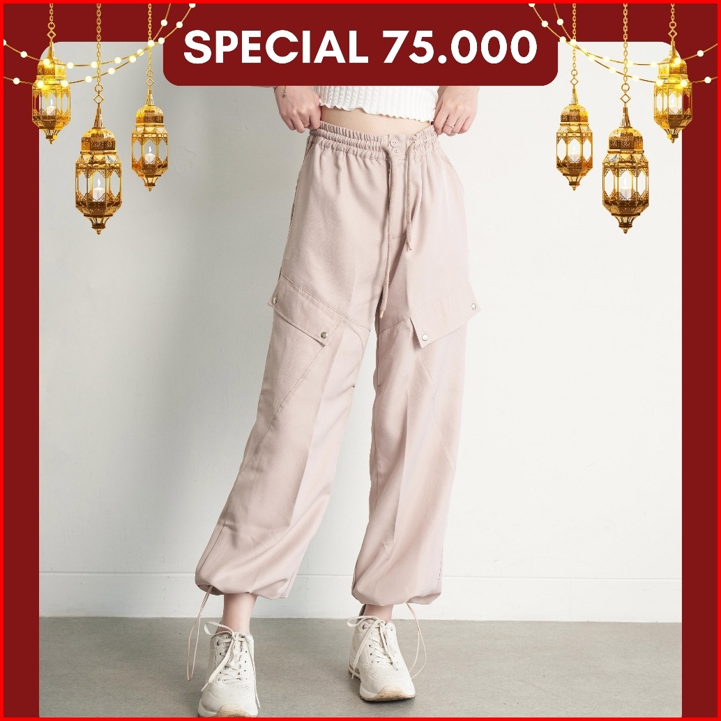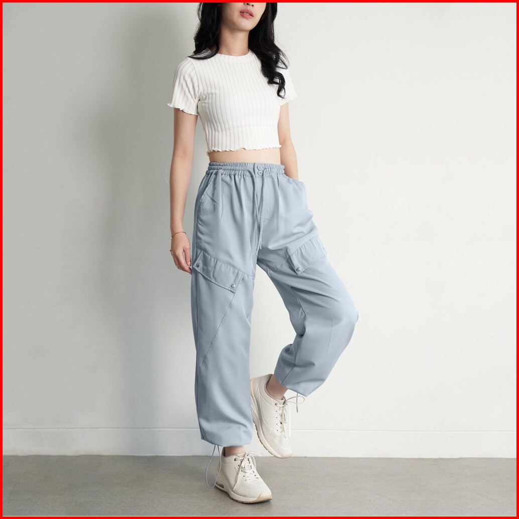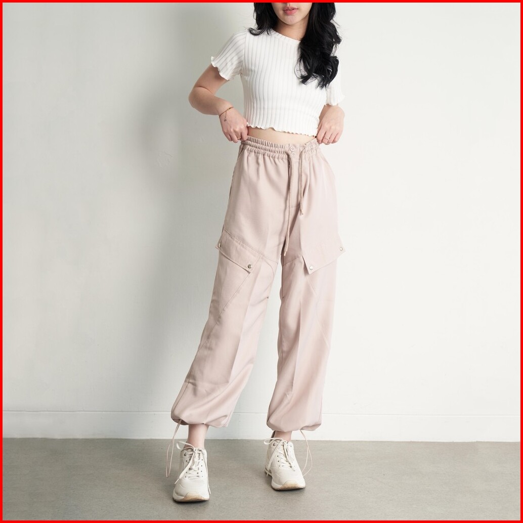 Queentin Celana Wanita Jogger Panjang 0491 Twill Bellano Polos