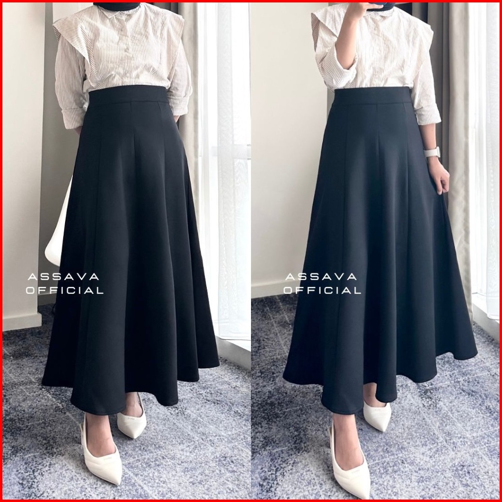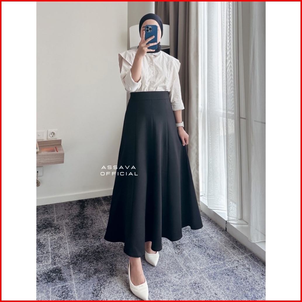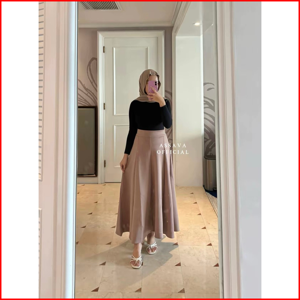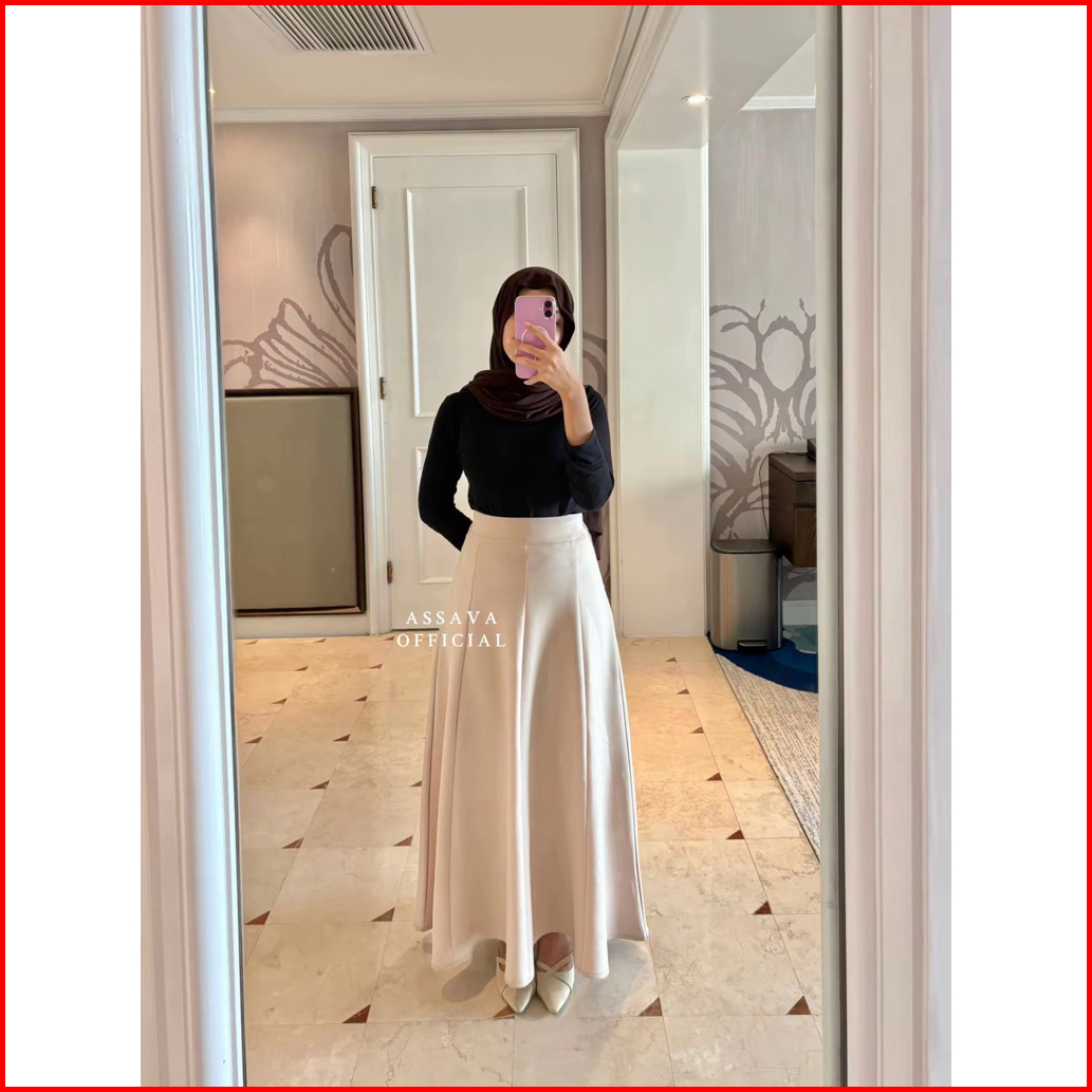Umbrella Skirt - Korean Loose Maxi Skirt Rok Wanita Anti Kusut - Rok Flare Scuba Wanita - Audy Skirt
