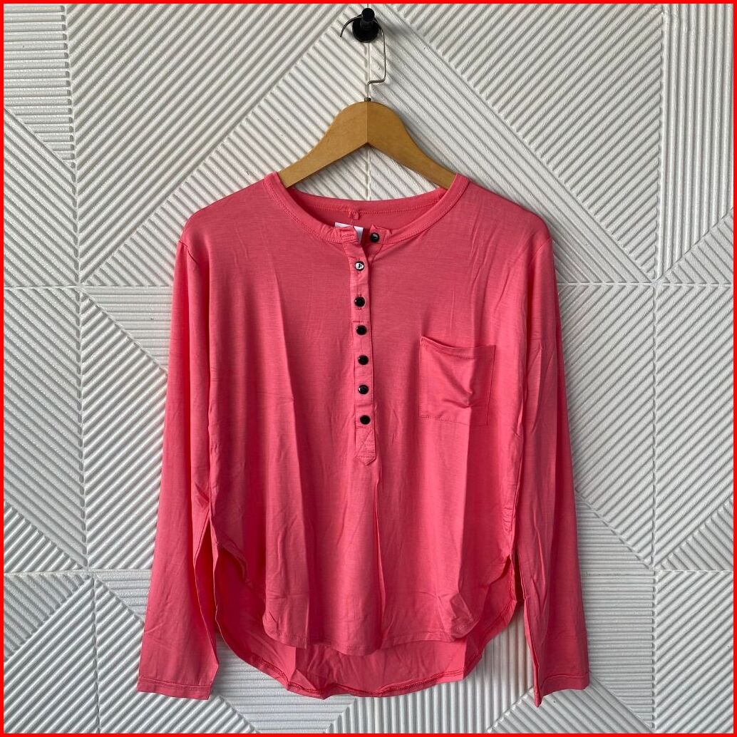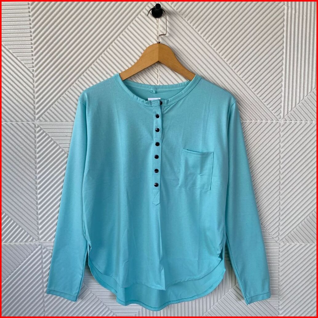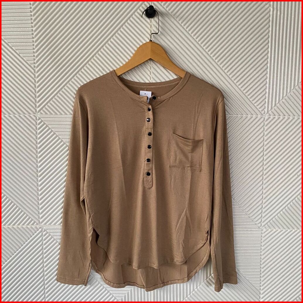 Atasan Kaos Lengan Panjang Oval Kancing Kantong Polos Wanita Atasan Wanita Kaos Wanita Atasan Terbaru Kaos Panjang Wanit