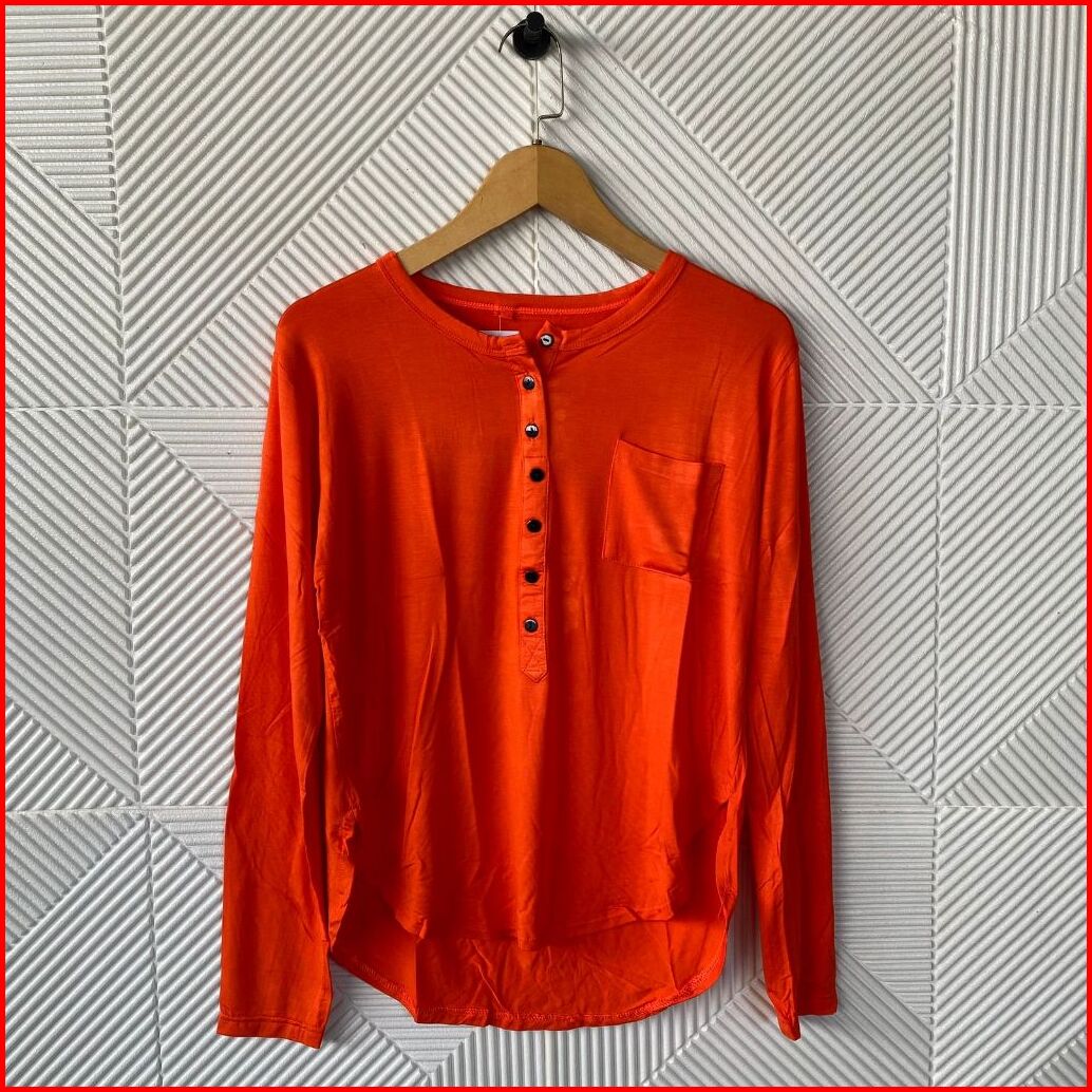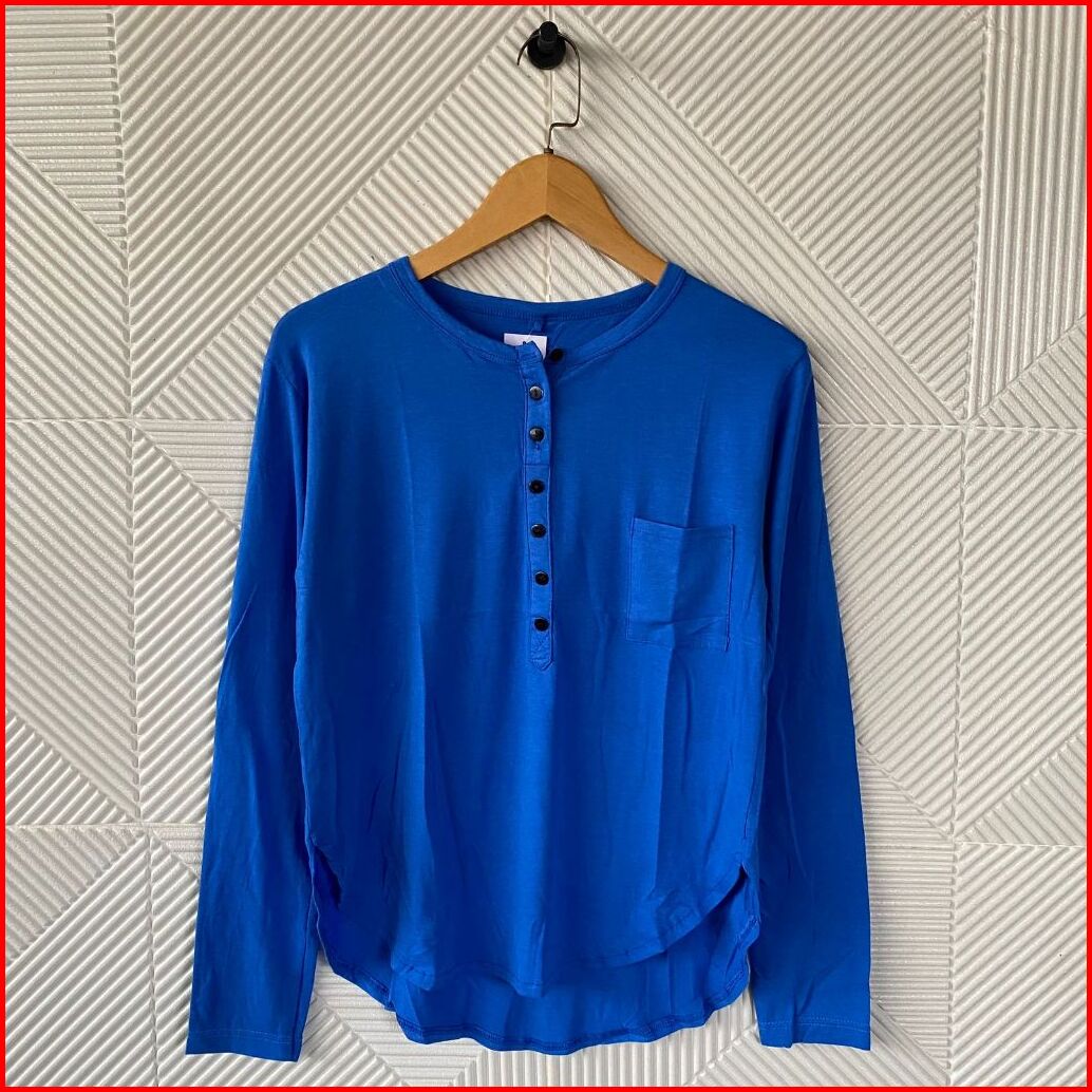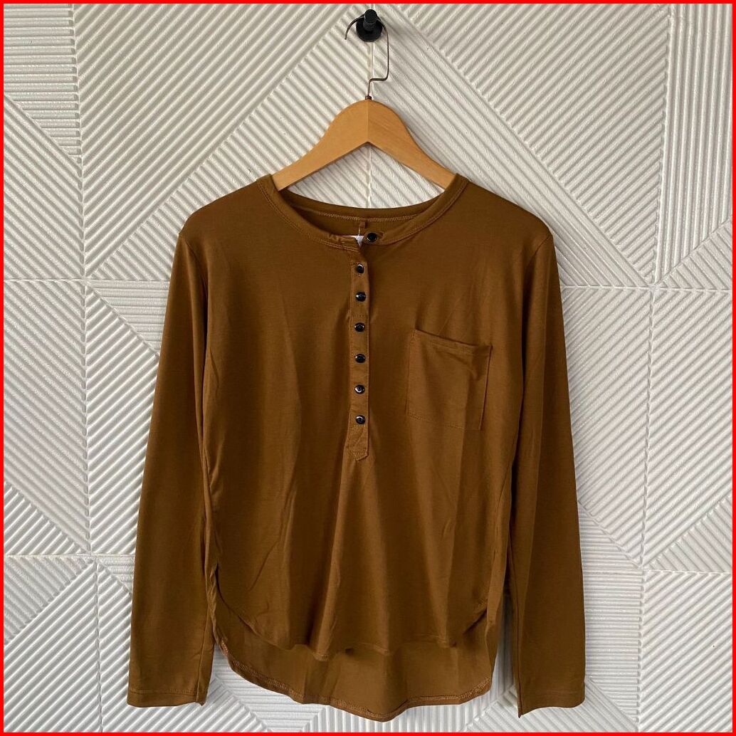 Atasan Kaos Lengan Panjang Oval Kancing Kantong Polos Wanita Atasan Wanita Kaos Wanita Atasan Terbaru Kaos Panjang Wanit
