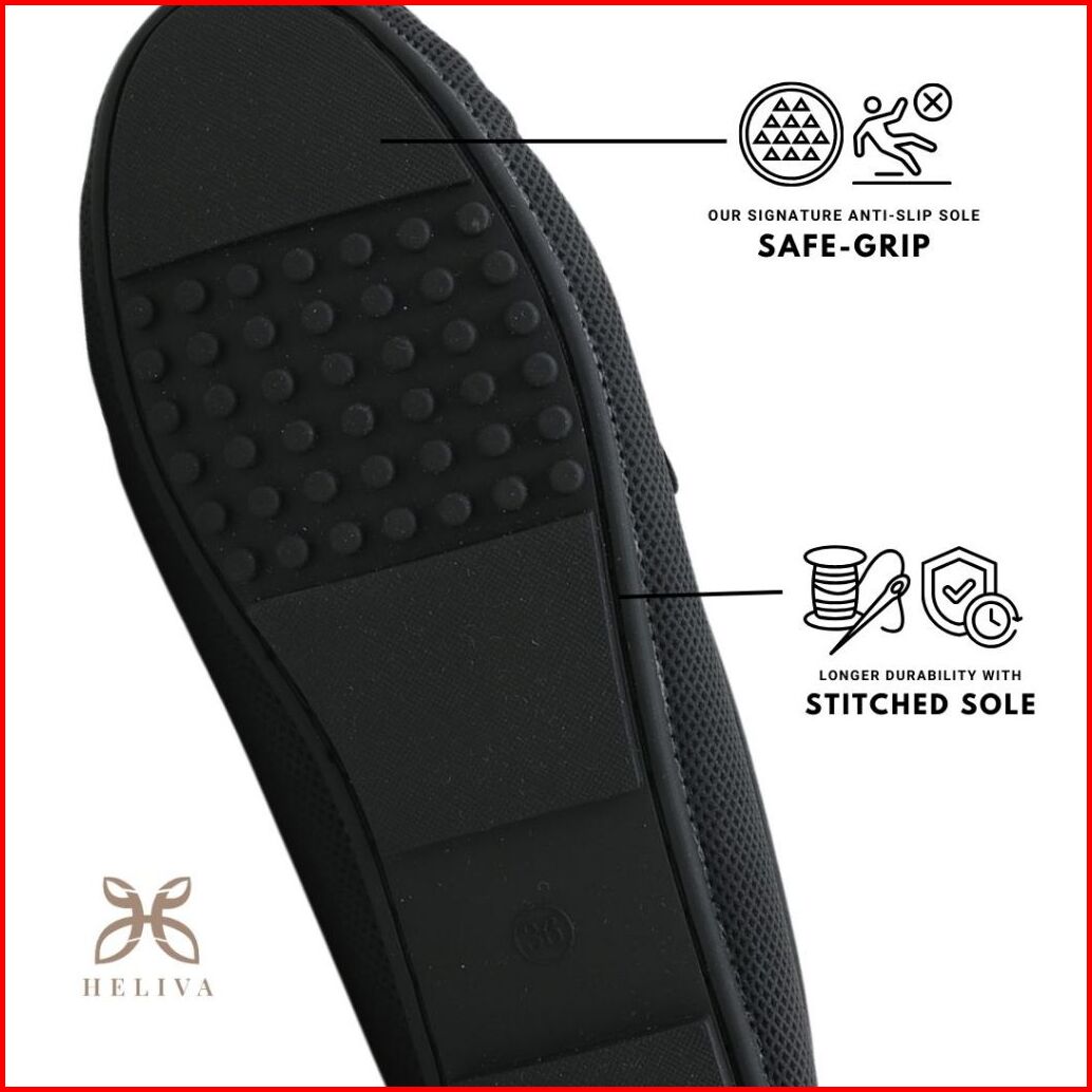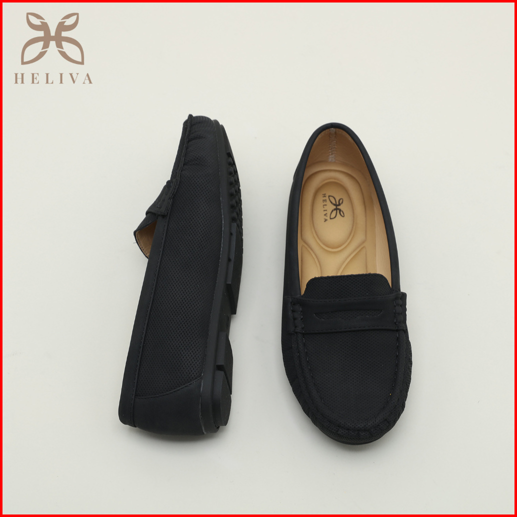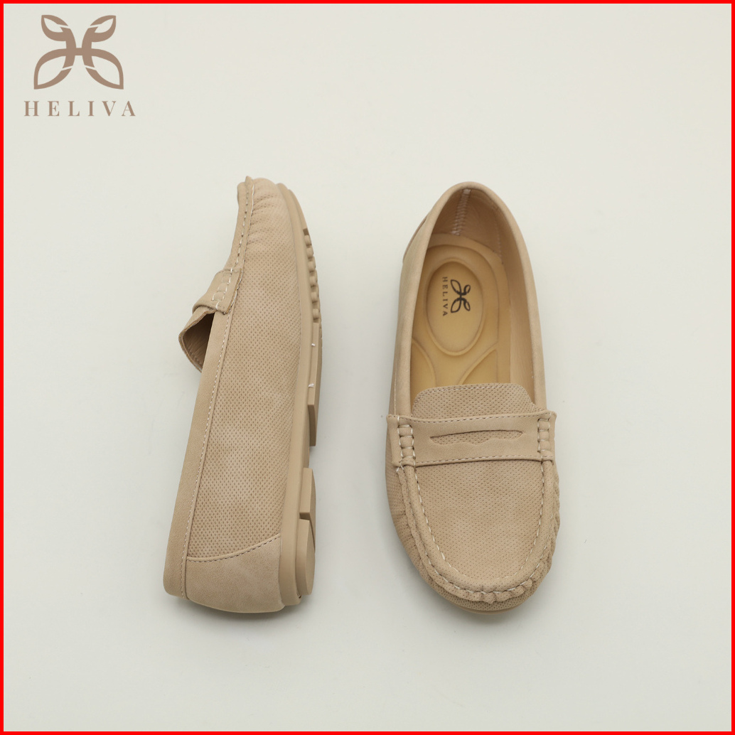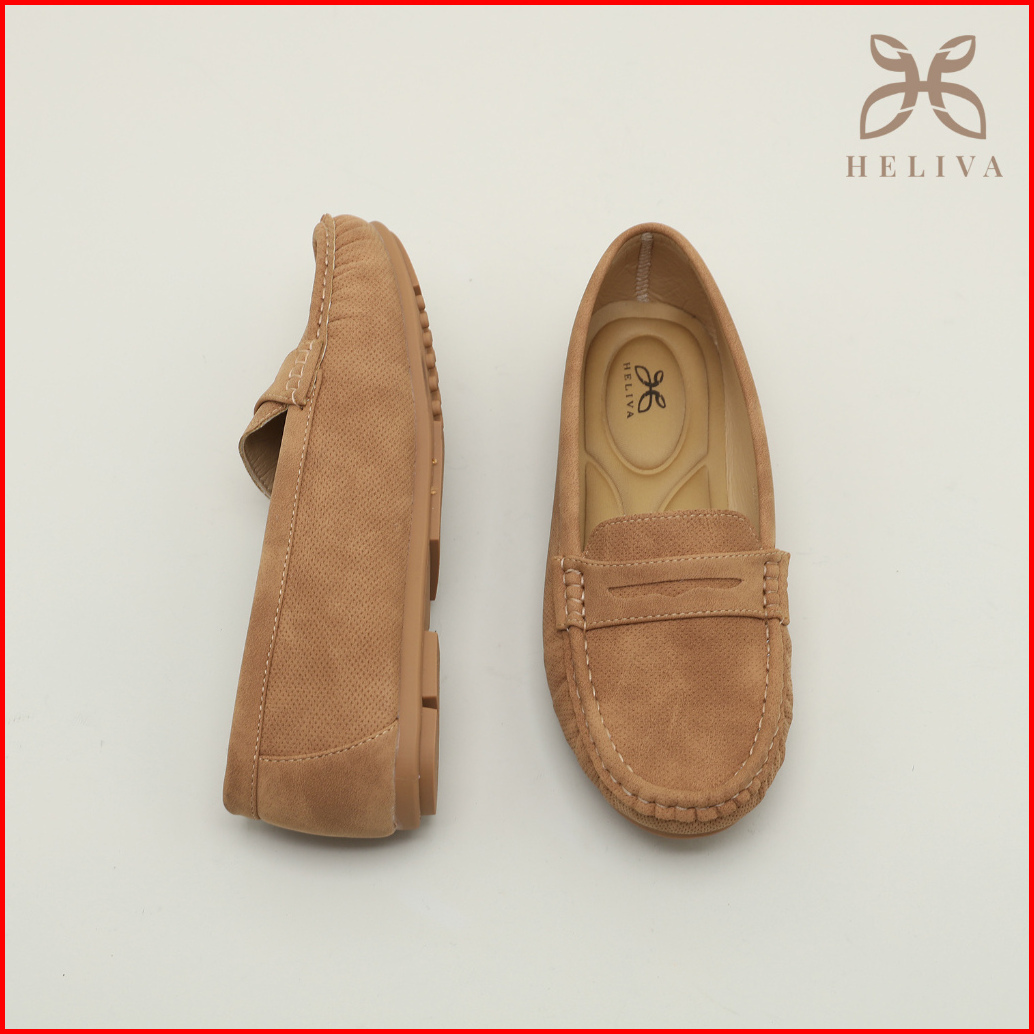 C133 Gy Heliva Frida Sepatu Loafer Flatshoes Casual Kerja Hangout Sol 1cm Wanita Bahan Kanvas Hv765