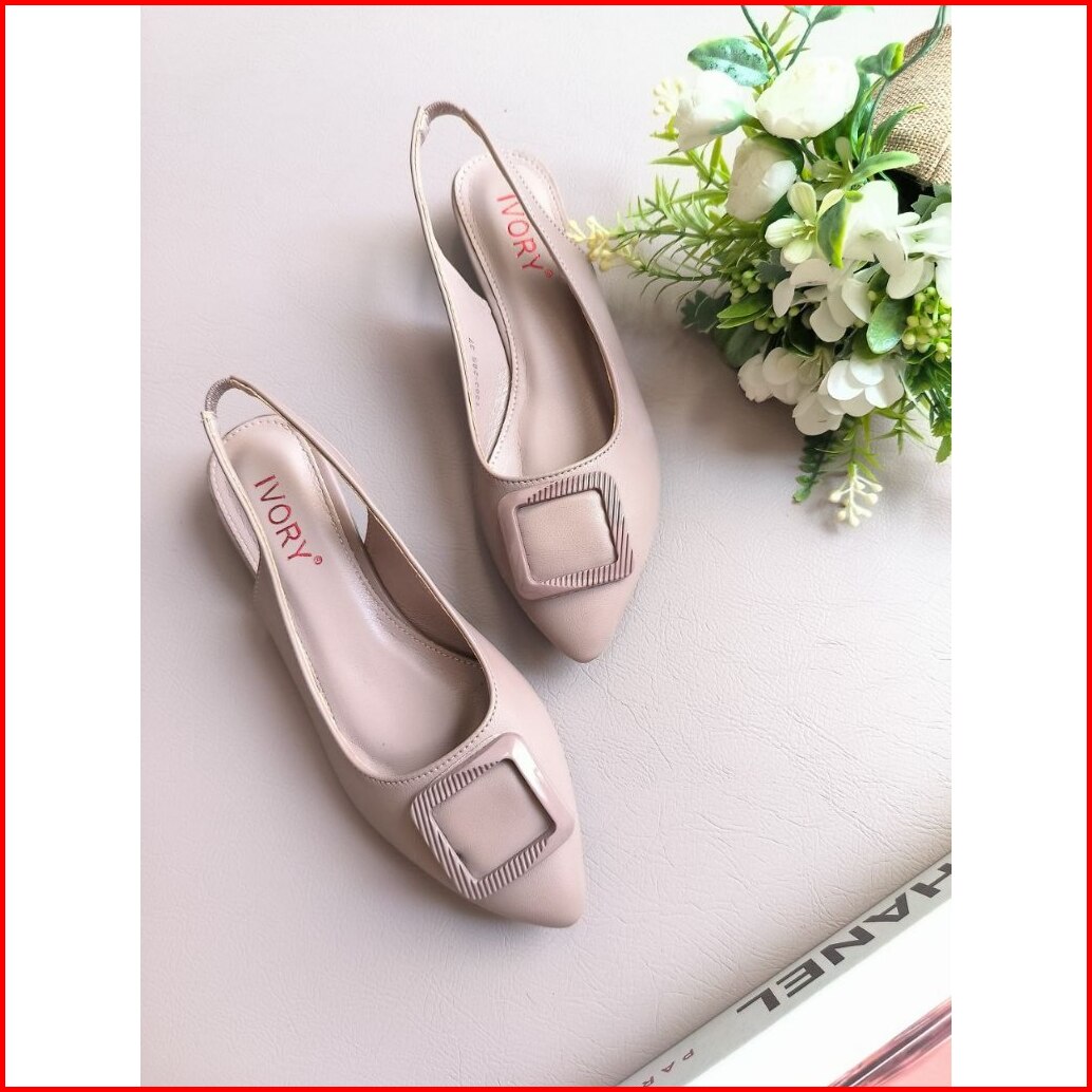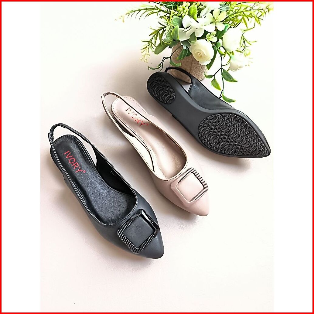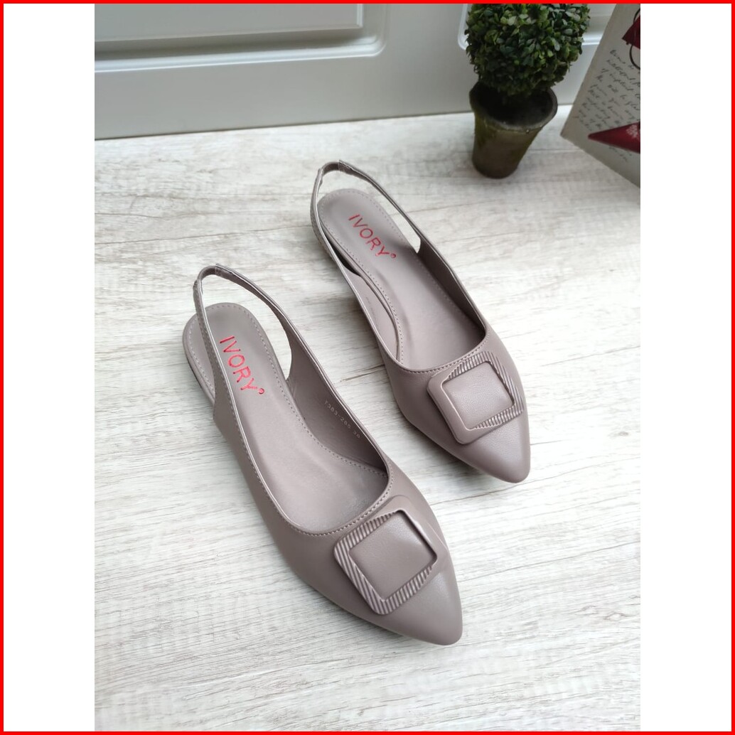 Ivory Sepatu Flat Wanita Tali Belakang Fashion T383-285