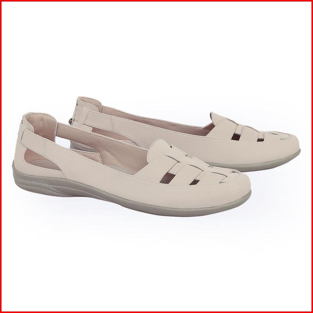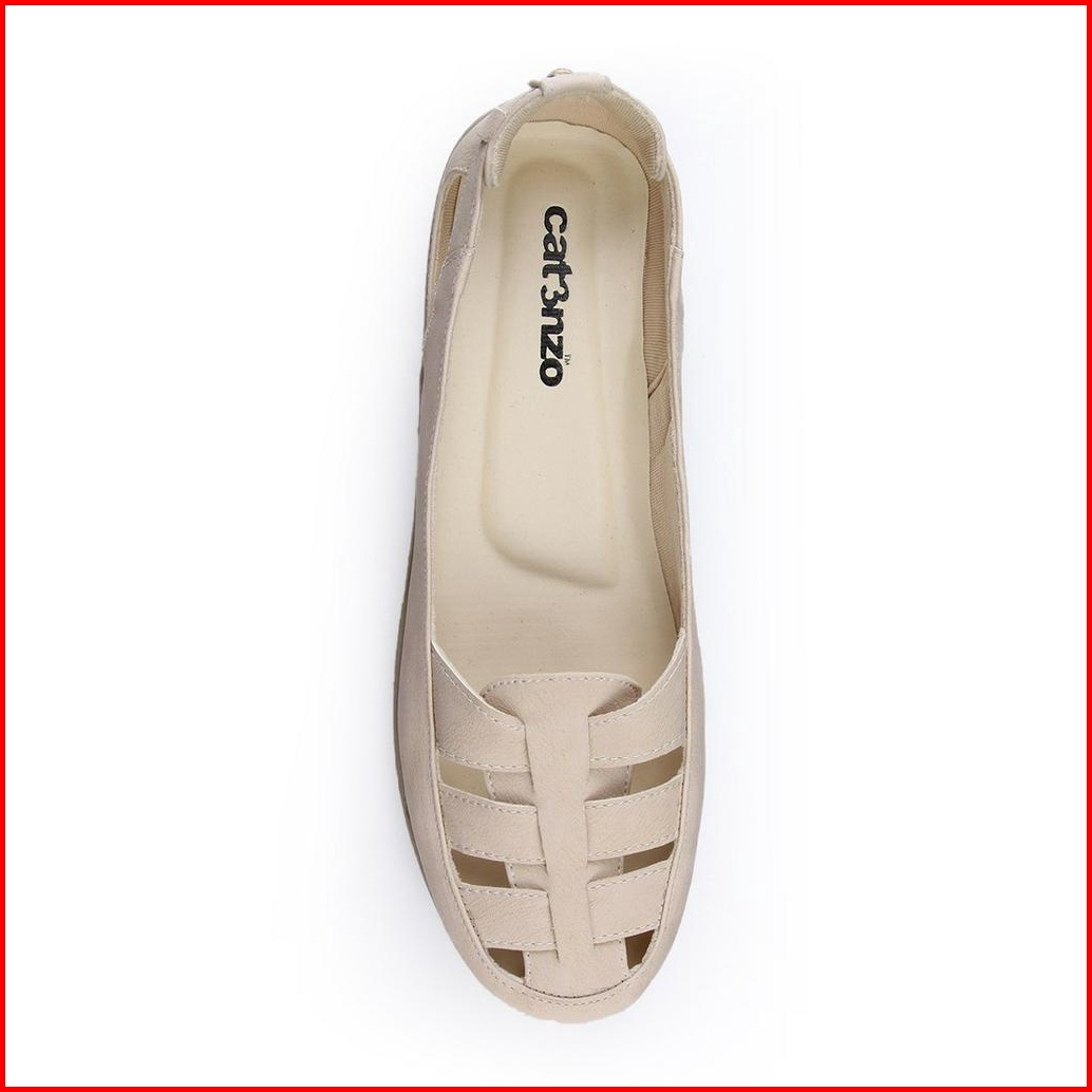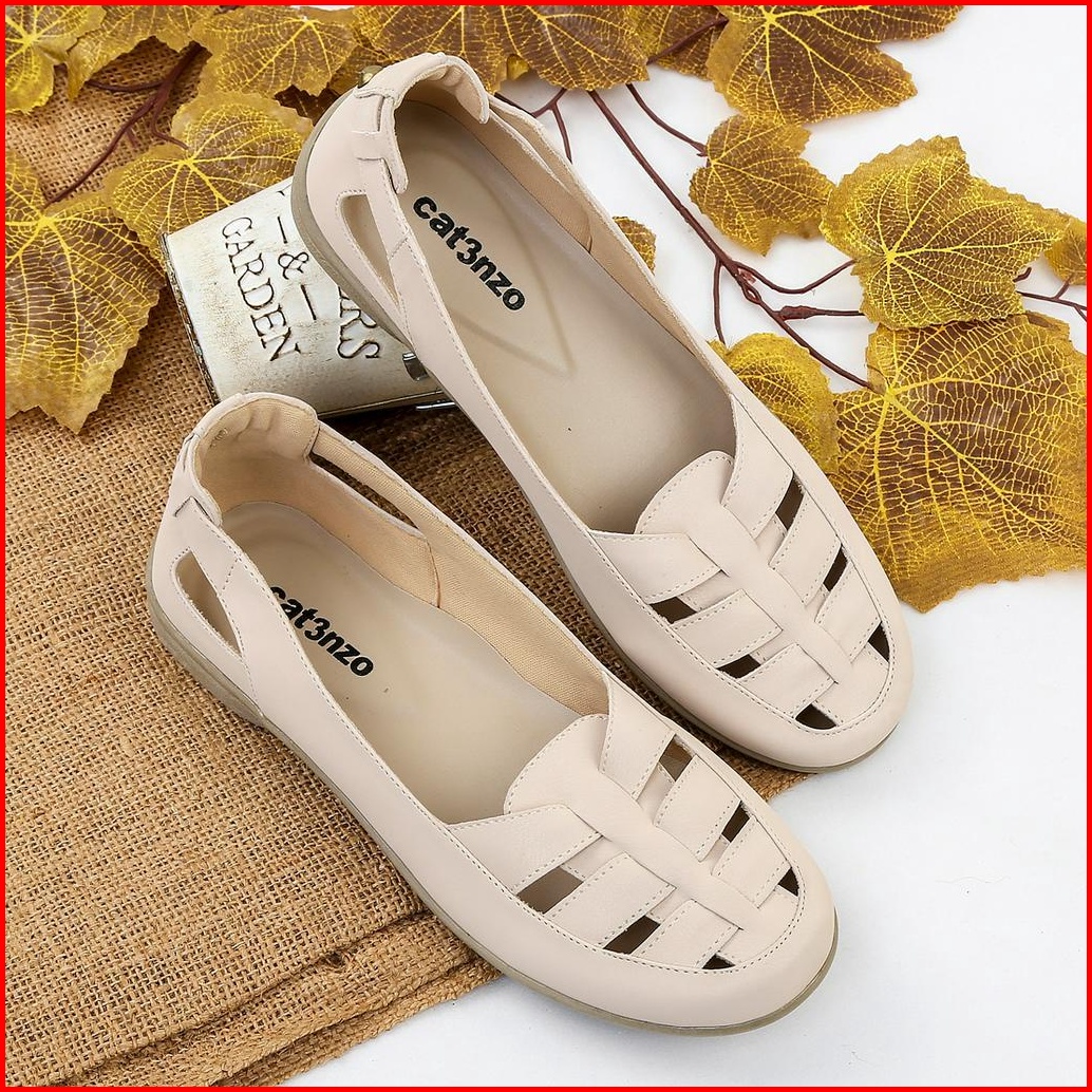 Catenzo Sepatu Wanita Flat Casual Original Kulit Sintetis Cream Sapatu Terlaris Shoes Woman Flatshoes Ori Warna Krem Cew