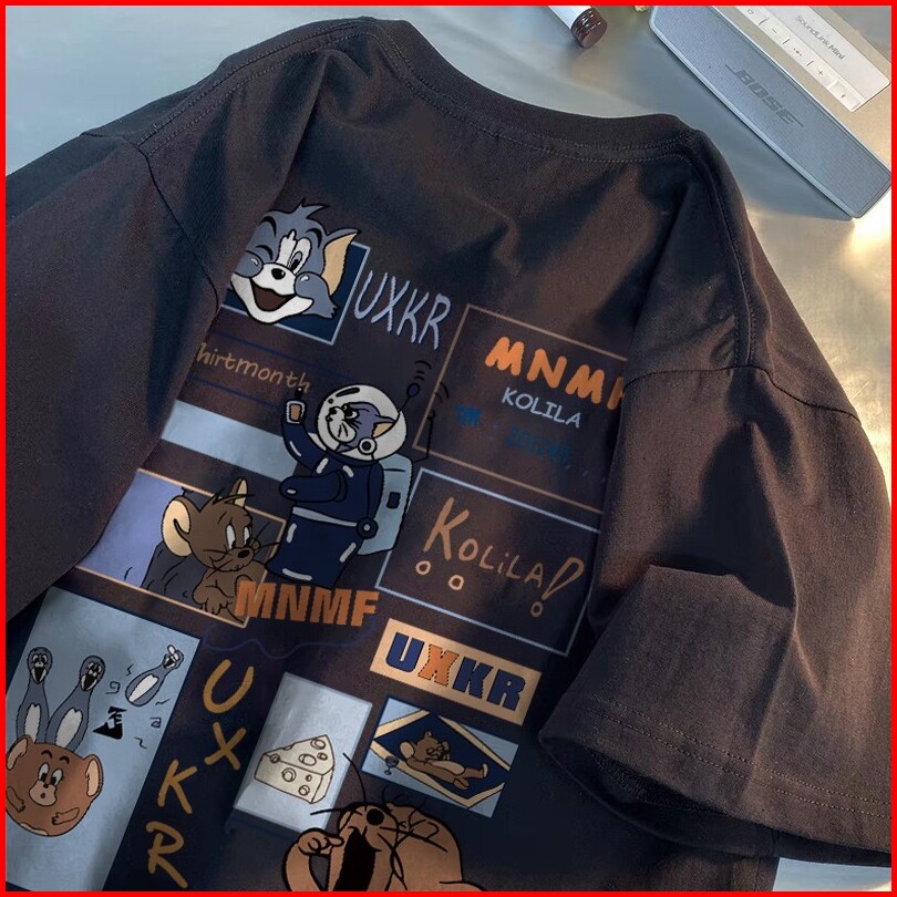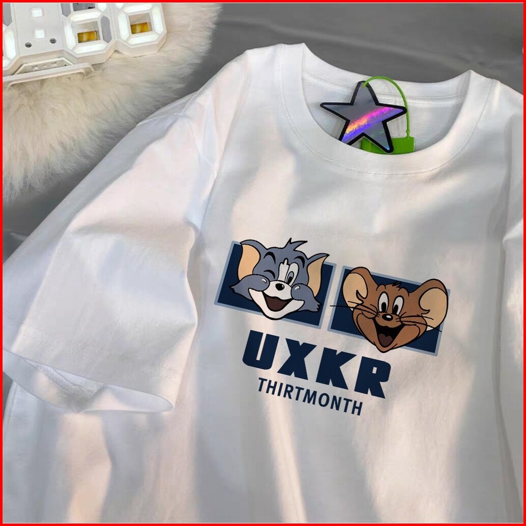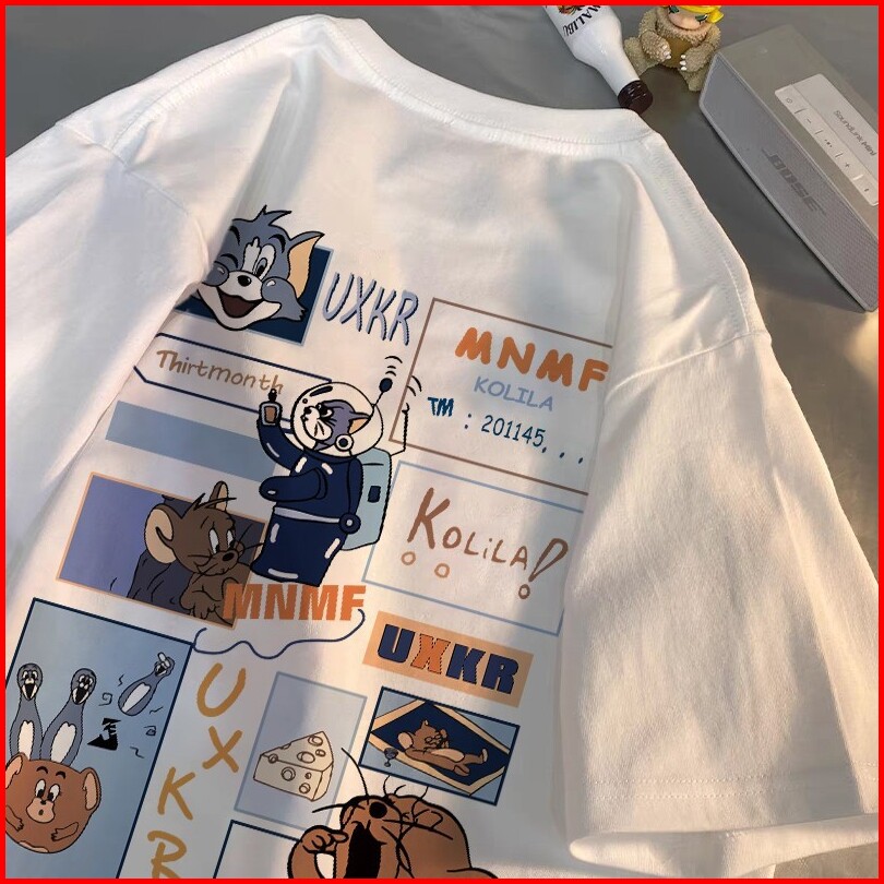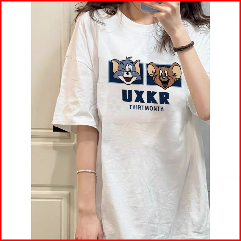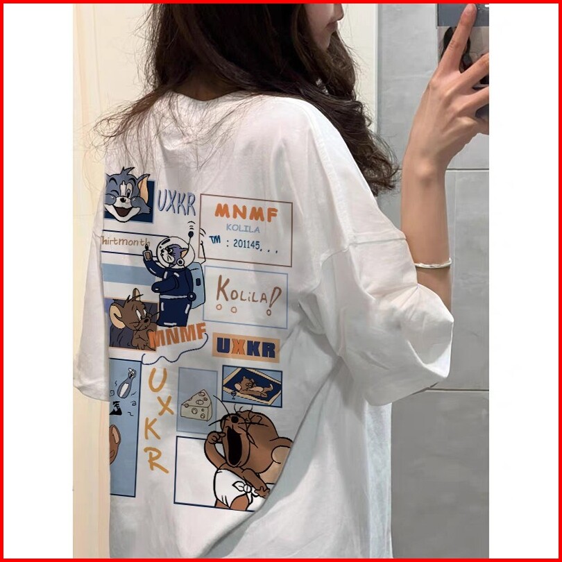 T Shirt Cat And Mouse Lucu Fashion Korean Style Kaos Oversize Baju Atasan Wanita Terbaru 100 Cotton