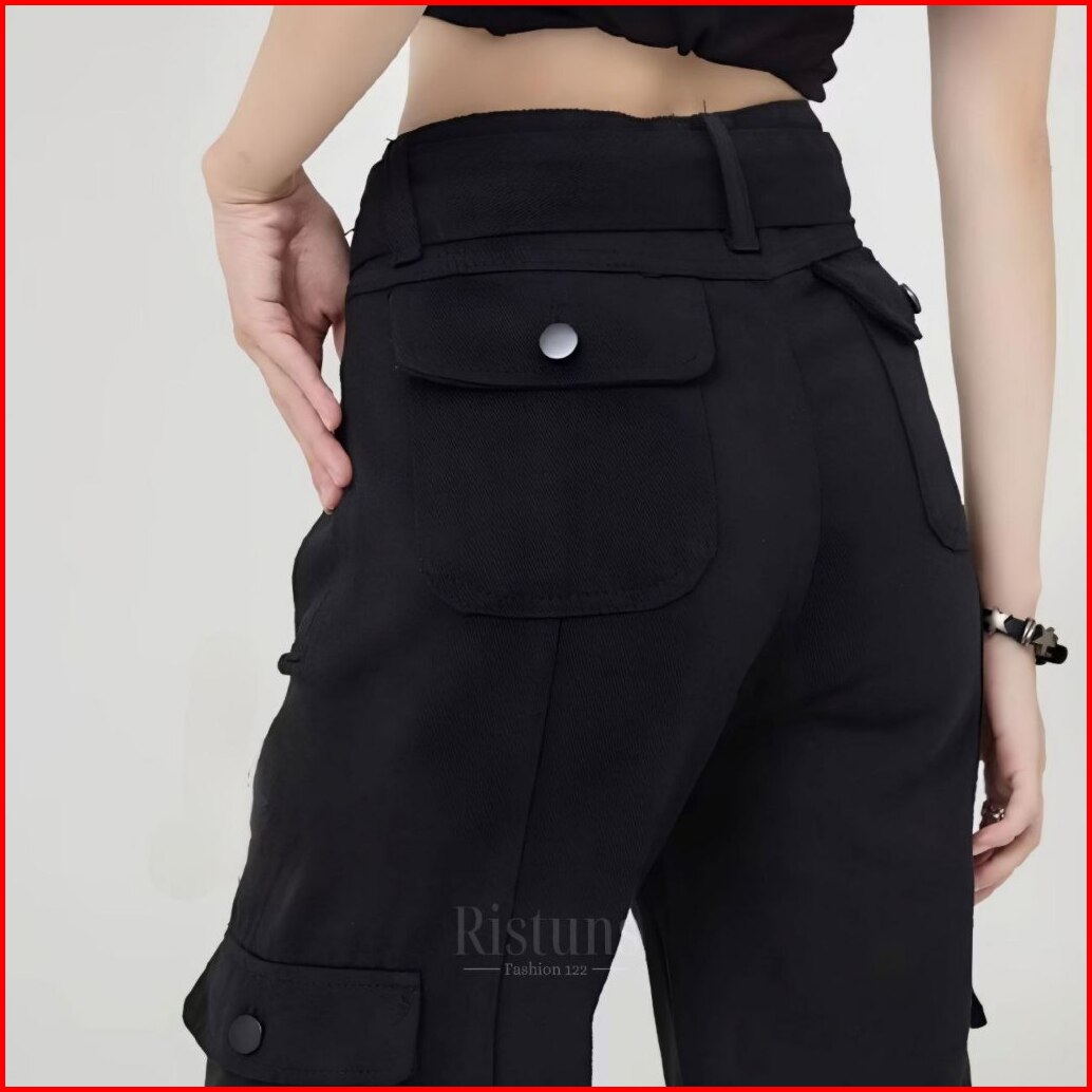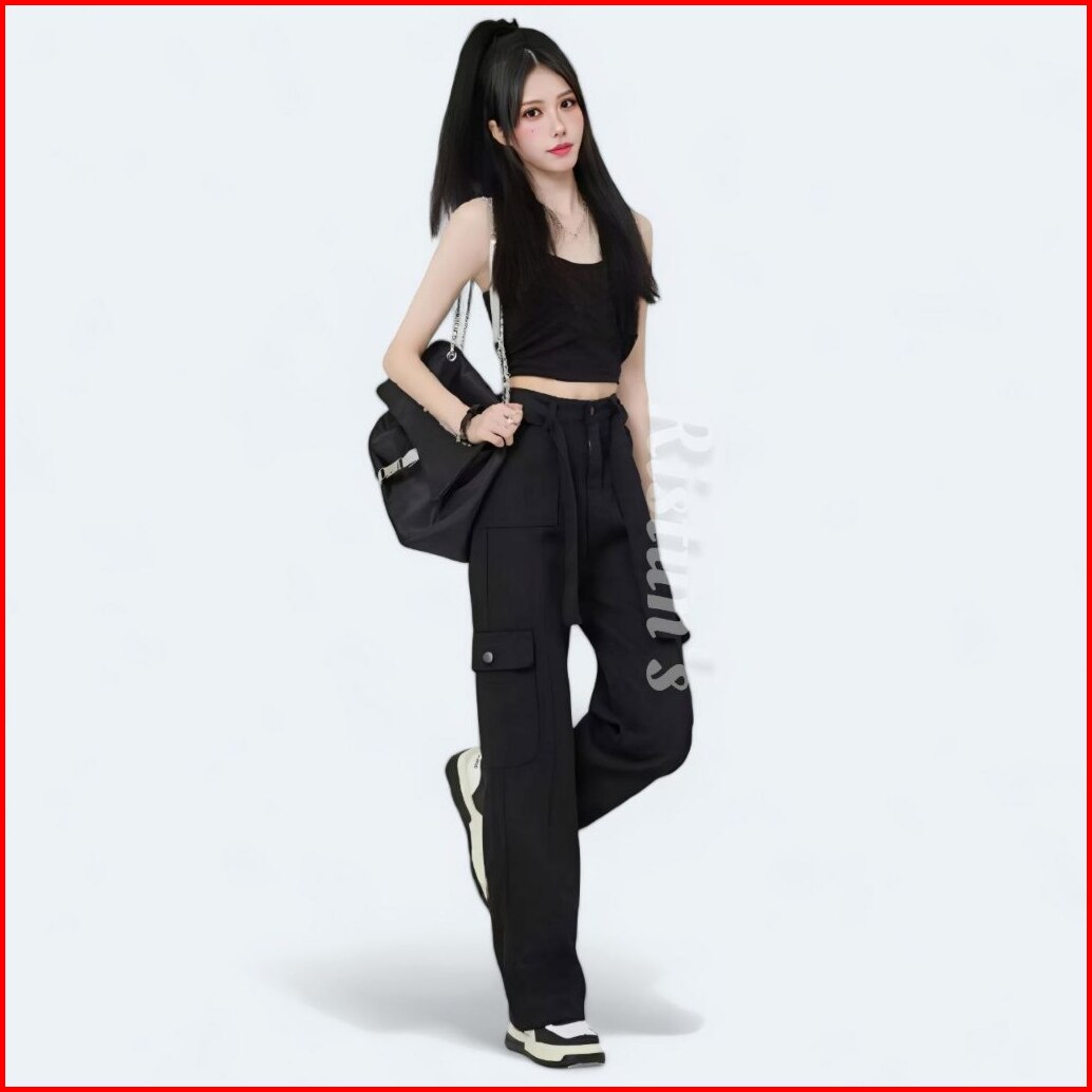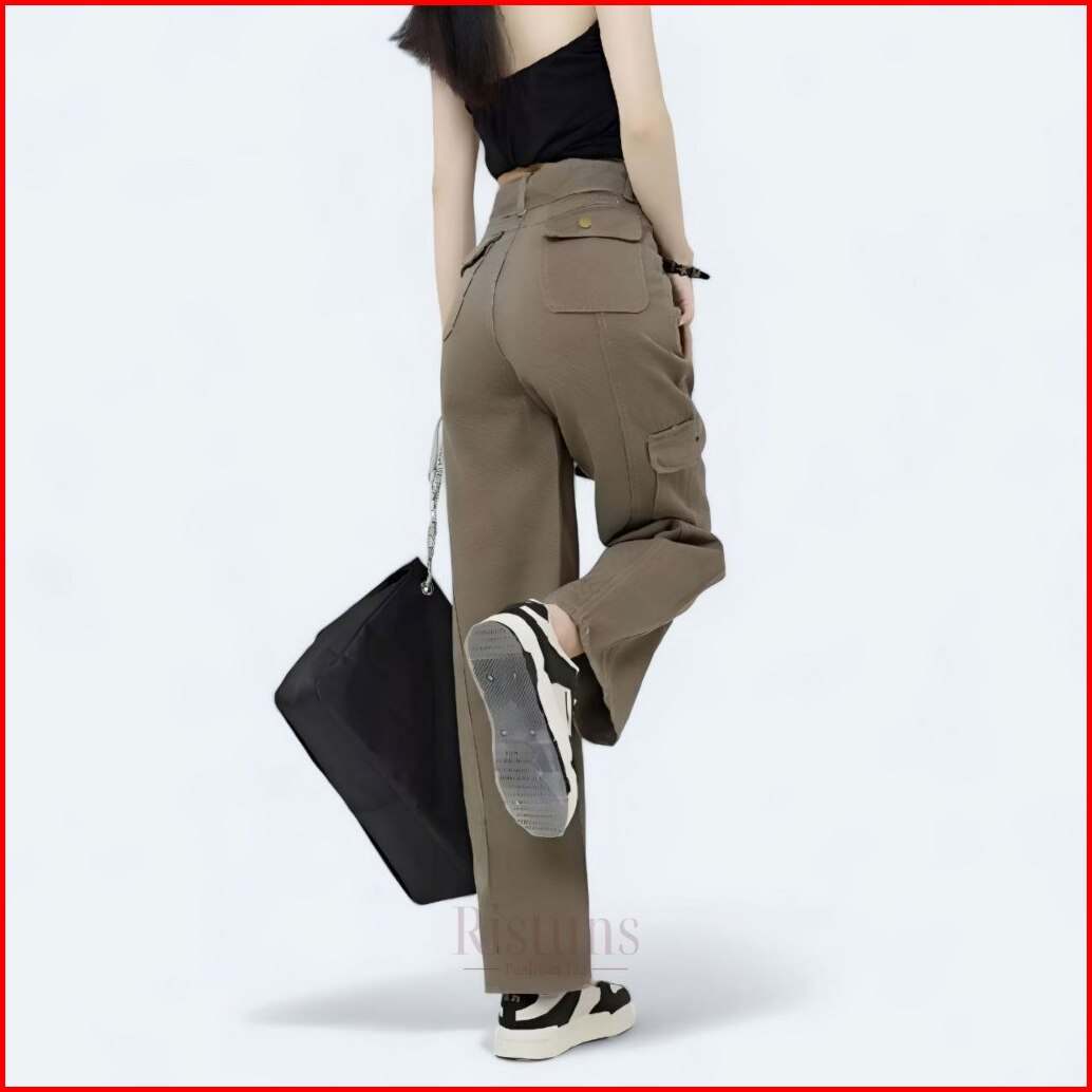 Celana Cargo Jeans Cewek Highwaist Model Gesper Streetwear Trendy