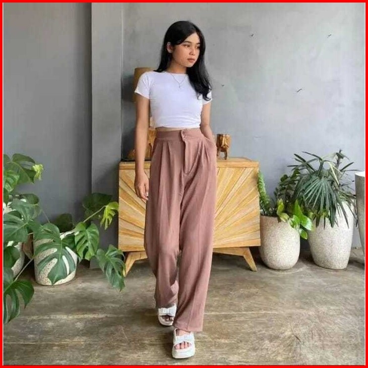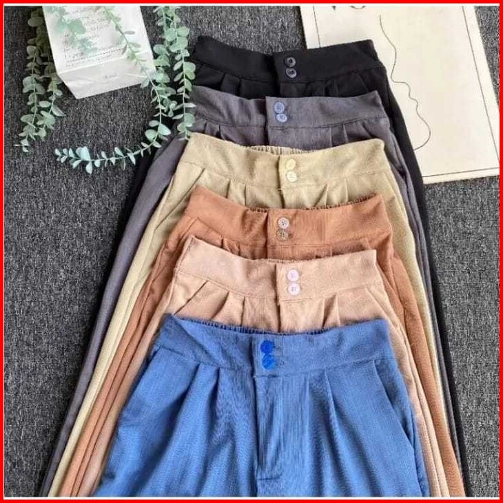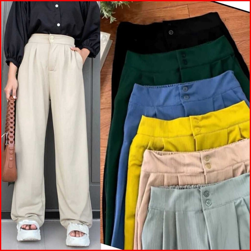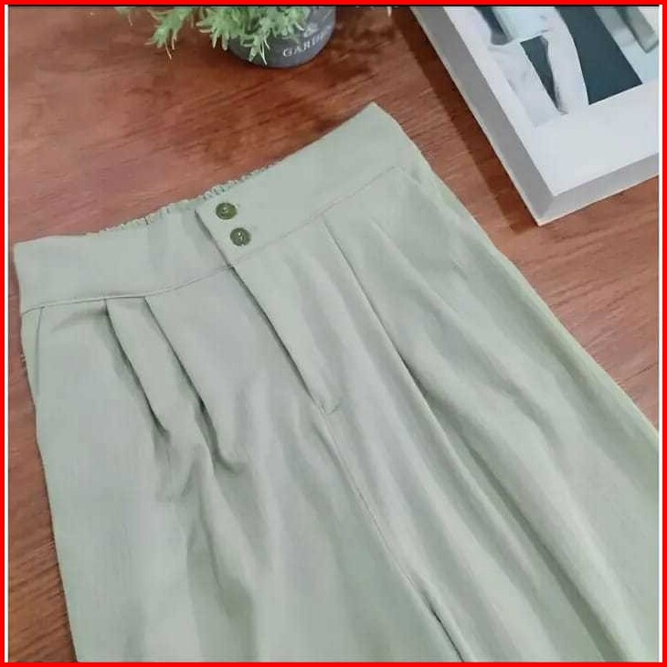 Clothes Mart - Jennie Knit Pants Celana Kulot Highwaist Knit Kancing Wanita