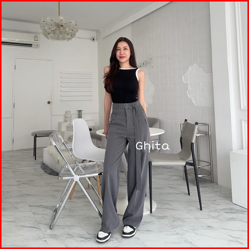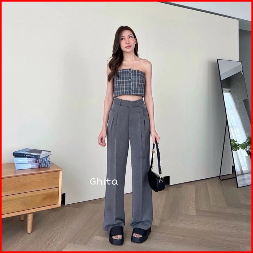 Obi Pants Highwaist - Celana Panjang Kulot Wanita Highwaist Trousers Loose Pants - Celana Kulot Kantor Formal Anti Kusut