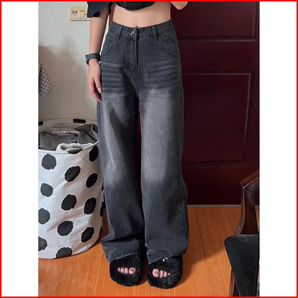 Ozy Store - Biru Retro Highwaist Celana Jeans Wanita Loose Kekinian