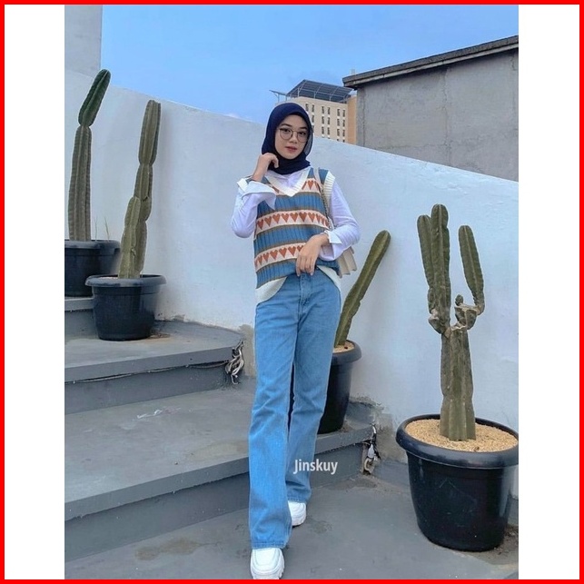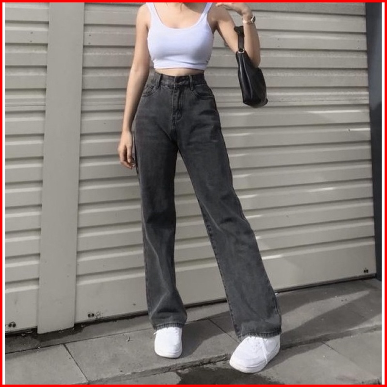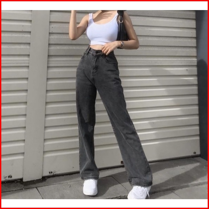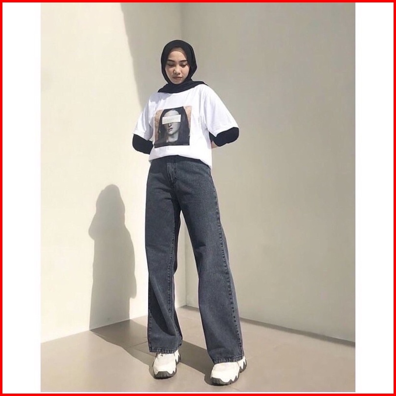 Highwaist Kulot Jeans Wanita Loose