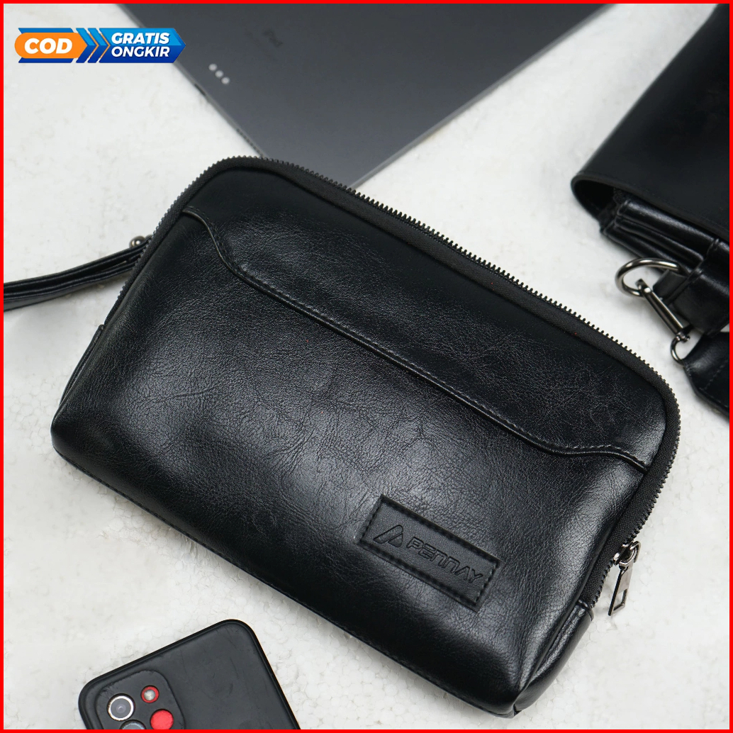 Pennay Man - Battler Handbag Tas Tangan Pria Wanita Tas Clutch Kulit Hitam