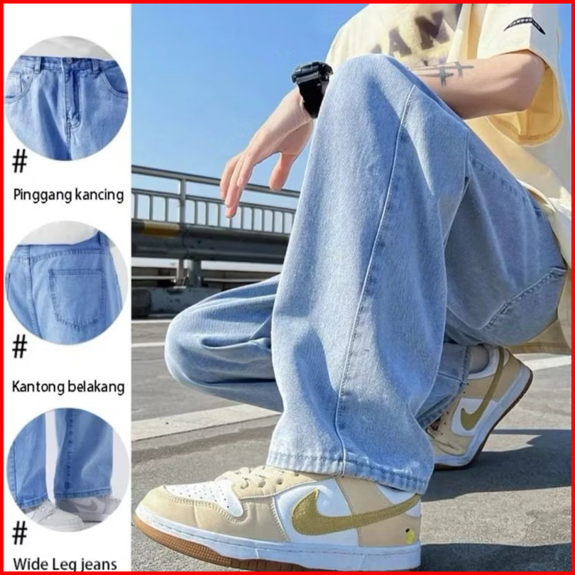 Suff Id Celana Jeans Pria Baggy Pants Korean Style Oversize Loose Blue Jeans Straight Kulot Boyfriend Jeans Longgar Cela