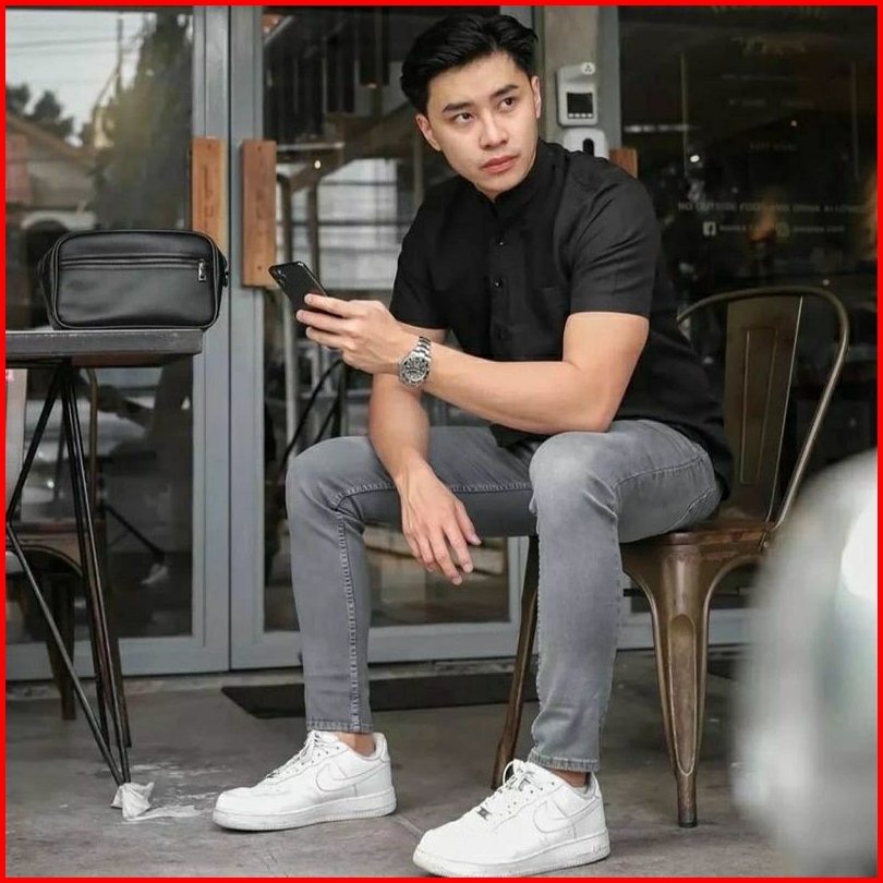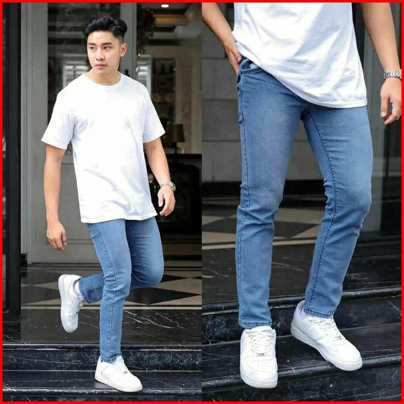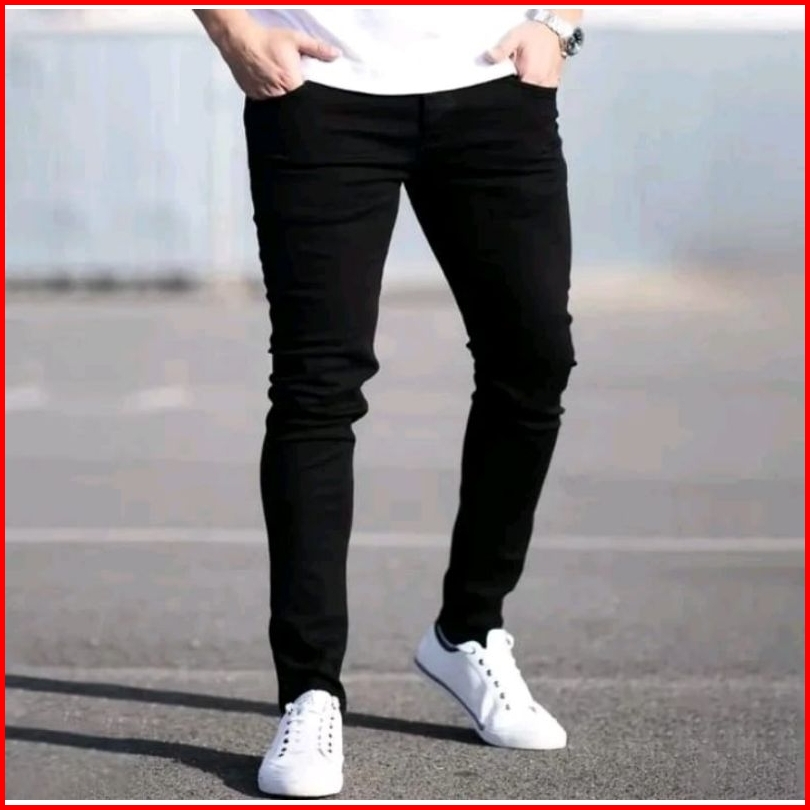 Celana Jeans Pria Panjang Skinny Pull Bear Slimfit Stretch Celana Pensil Cowok Hitam Pekat