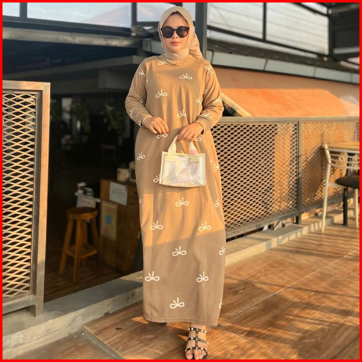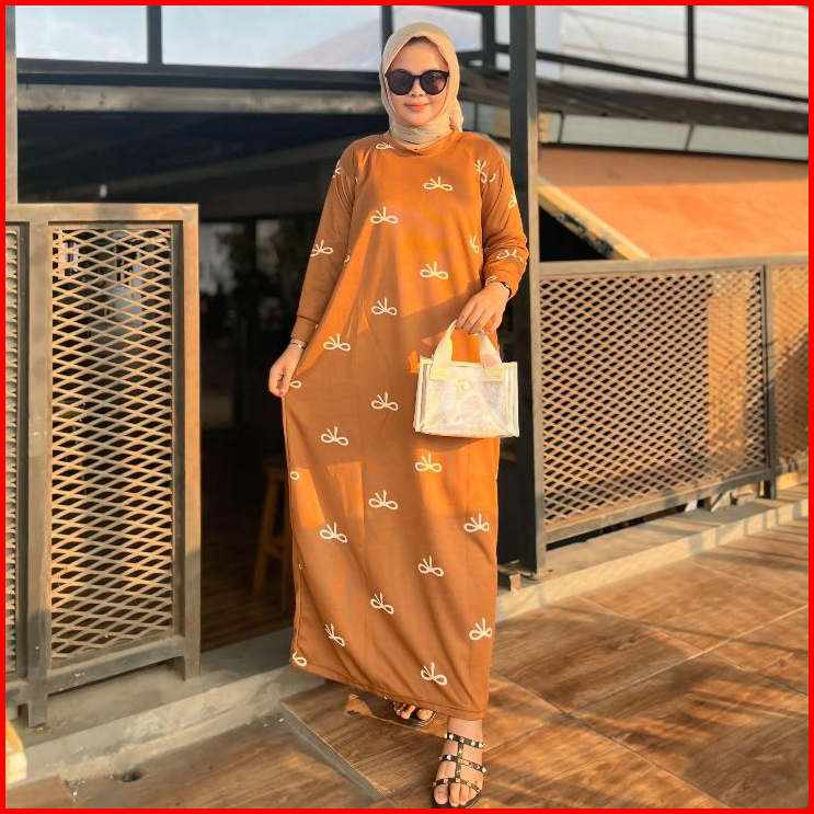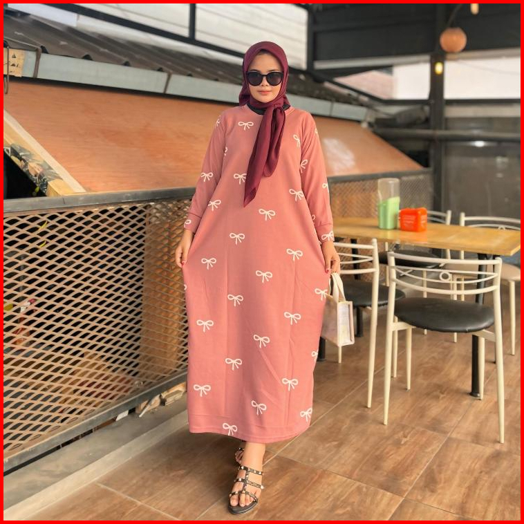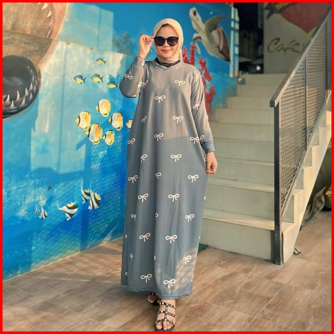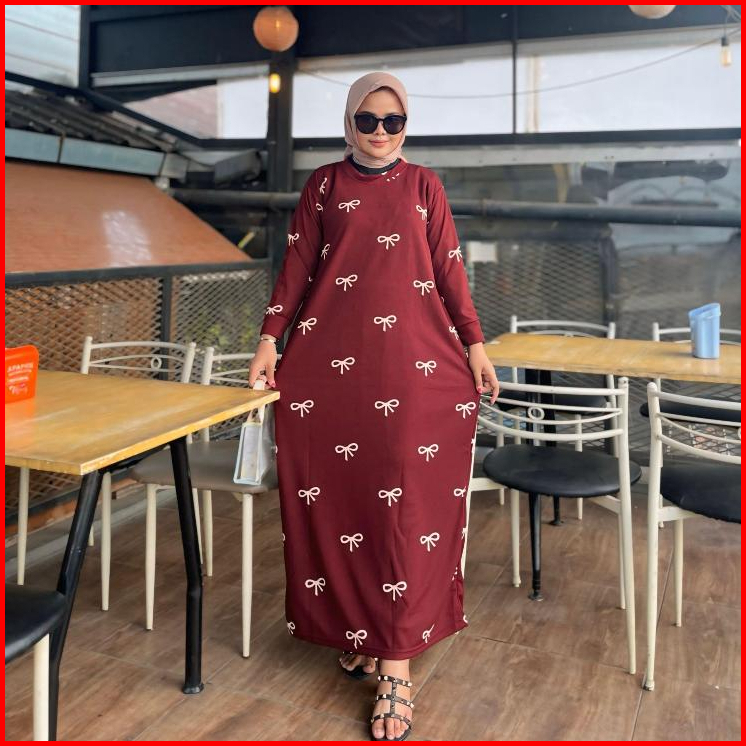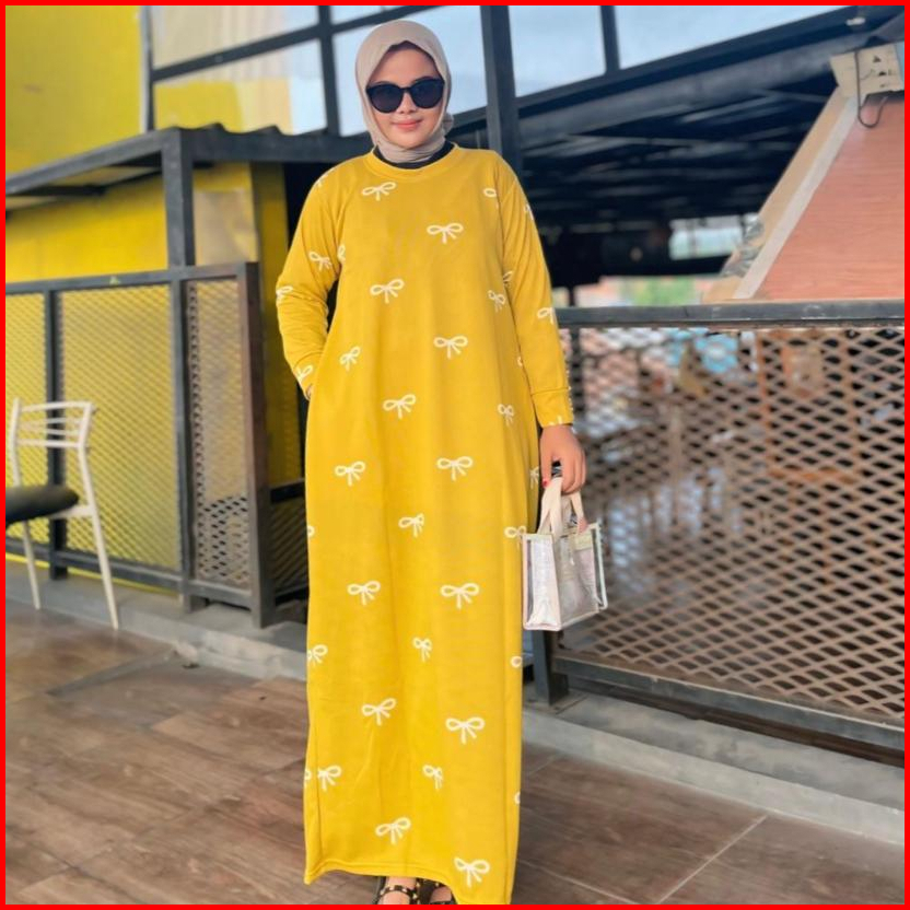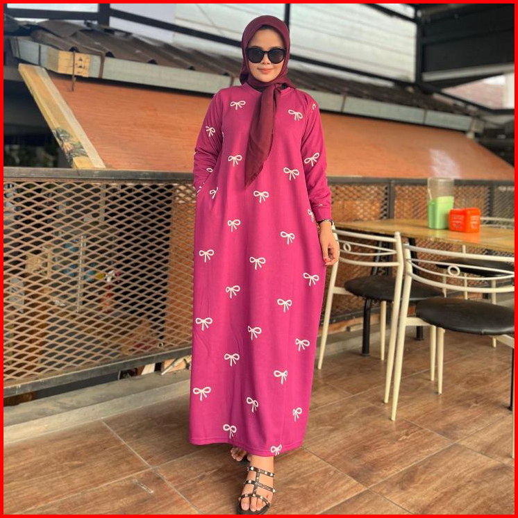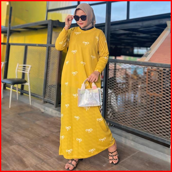 Lokal By Fx - Gamis Knit Muslim Class Dress Motif Pita Lengan Panjang Gamis Knit Premium