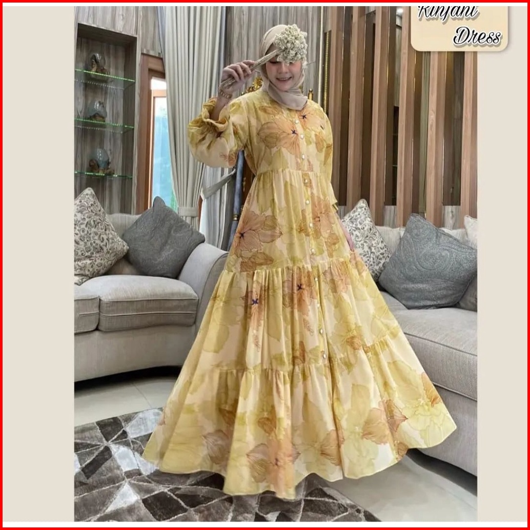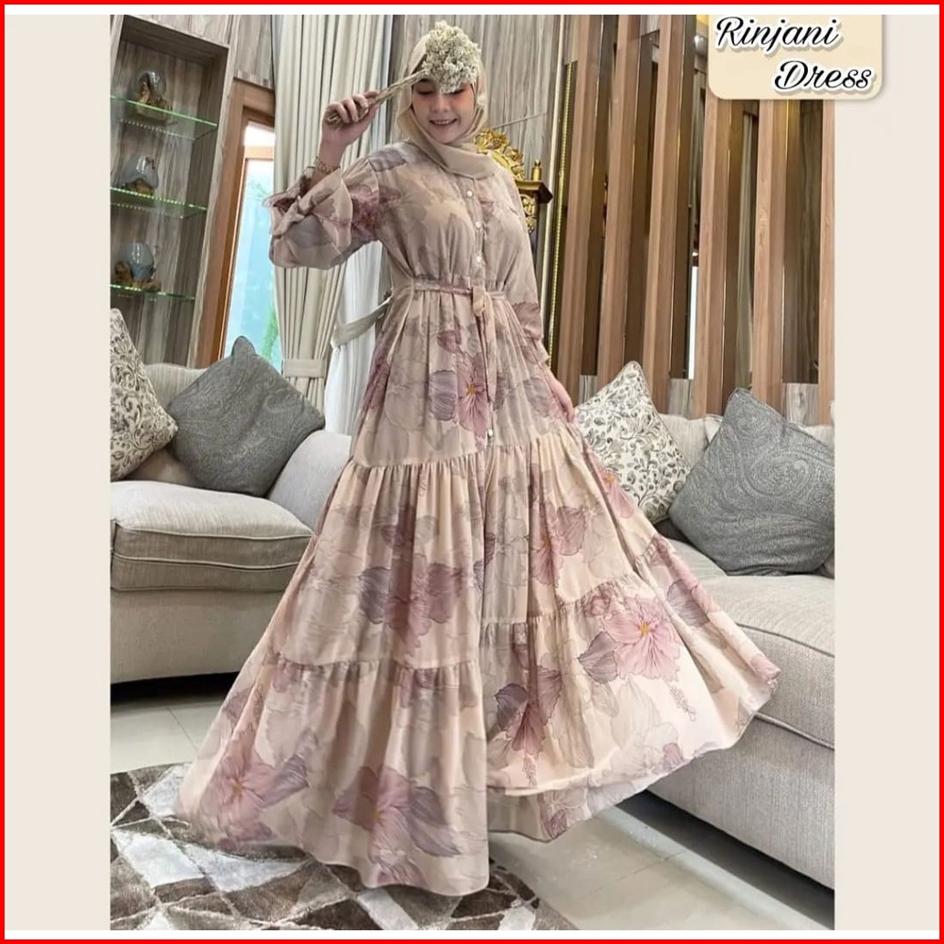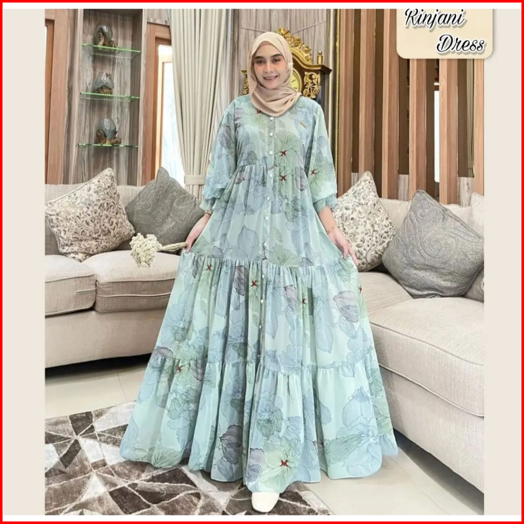 Rinjani Dress Gamus Muslimah Bahan Ceruty Babydoll Full Puring Gamis Malaysia Fashiot Wanita Kekinian Rinjani Dress Dres
