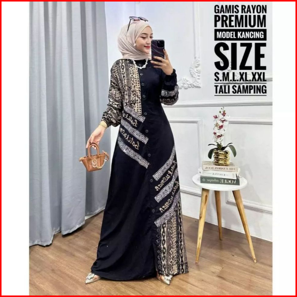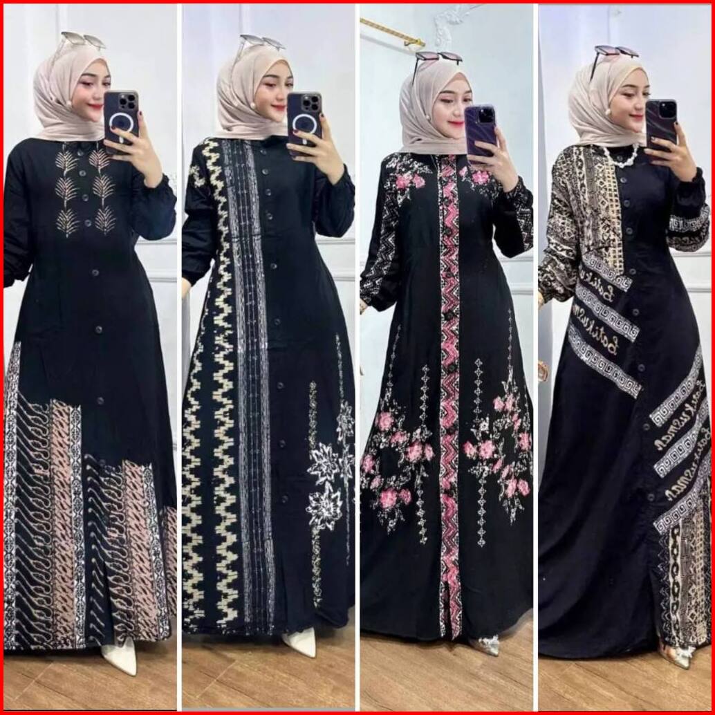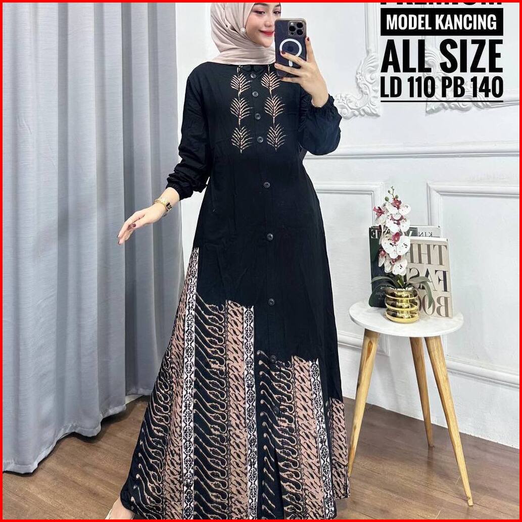 Batik Fafa - Gamis Twill Rayon Premium Model Kancing Terbaru Jumbo Syari Kekinian Batik Cap