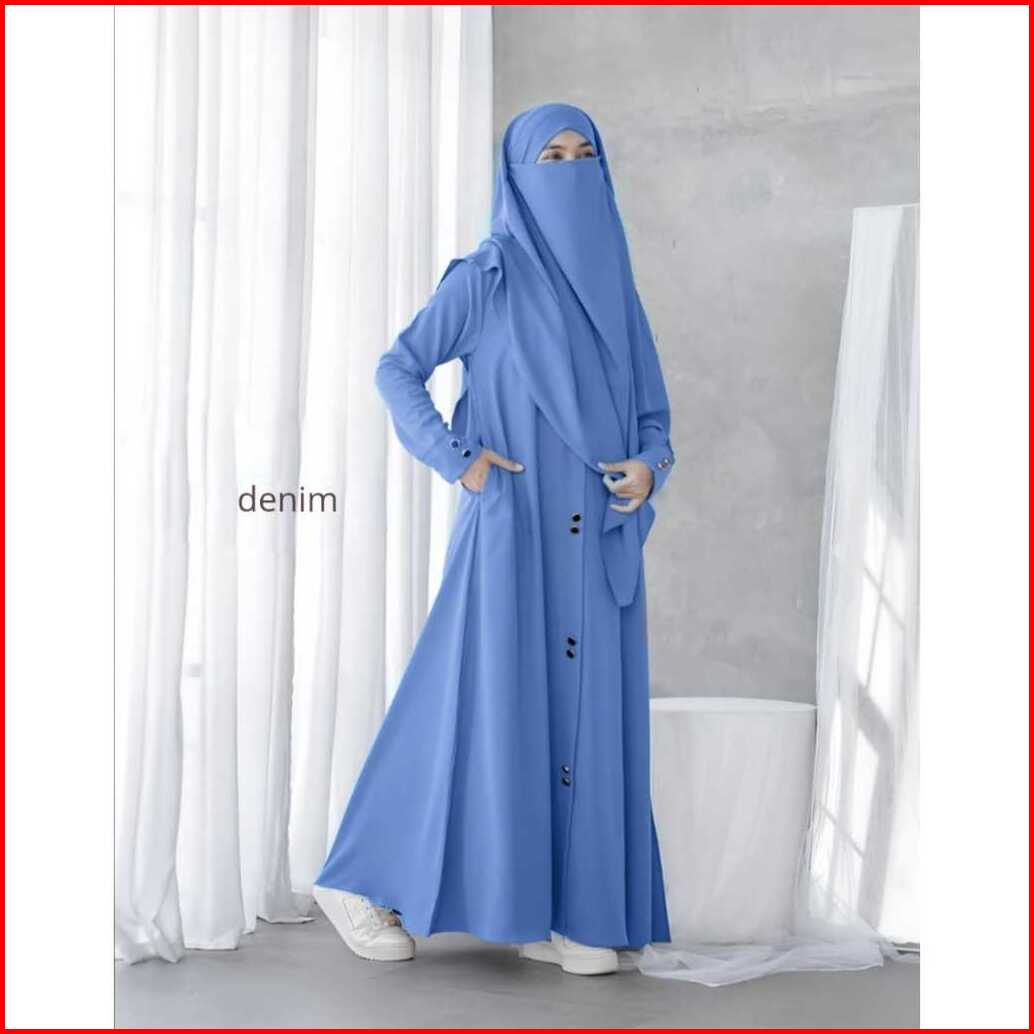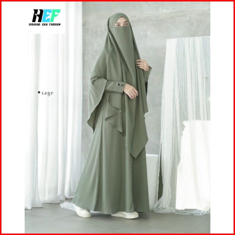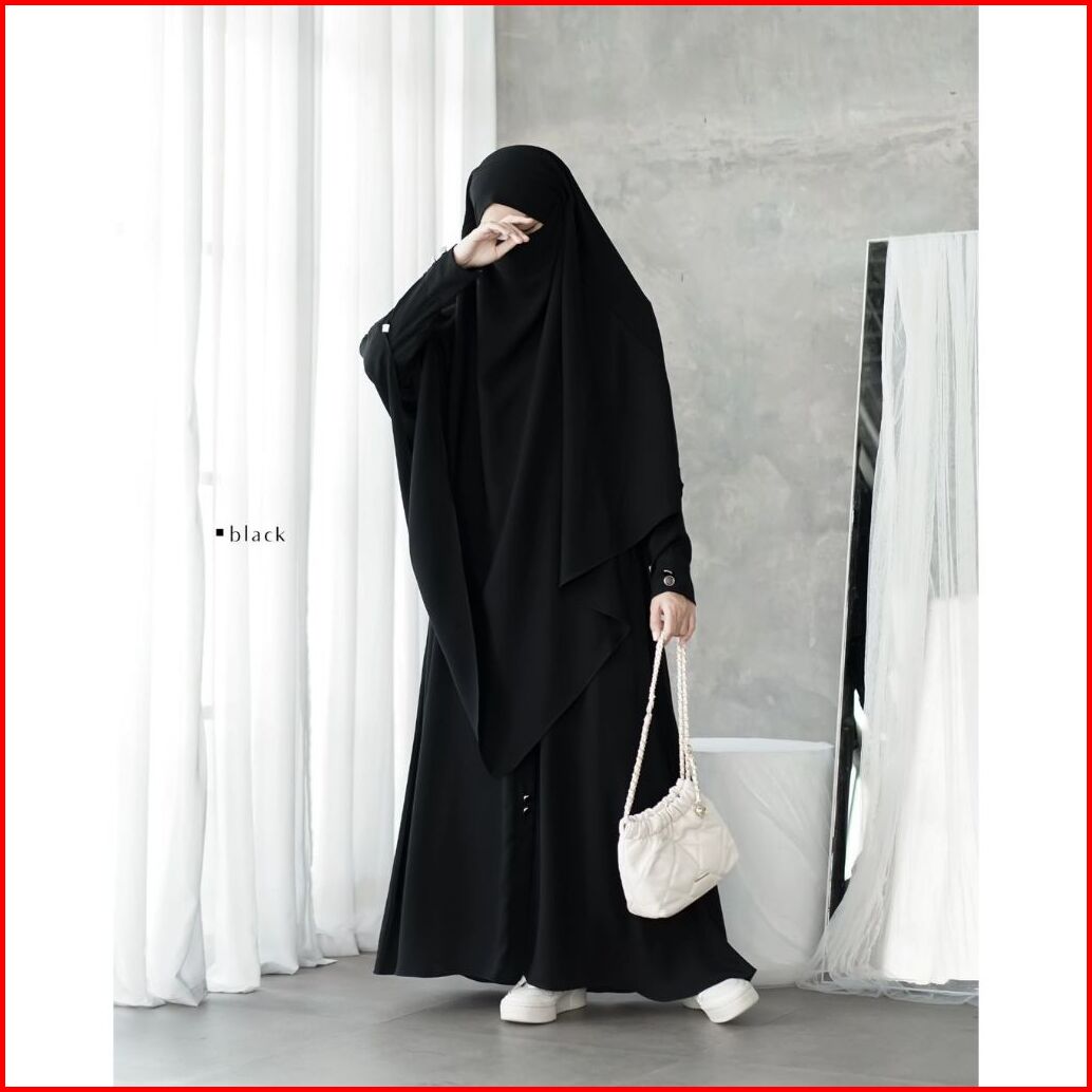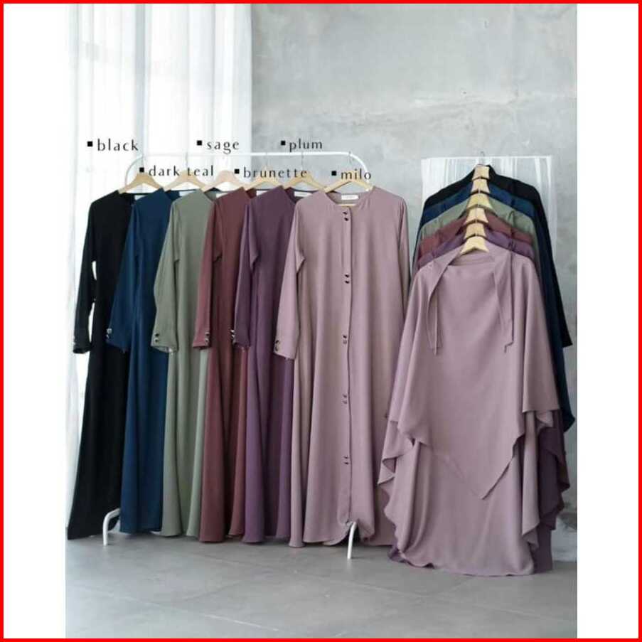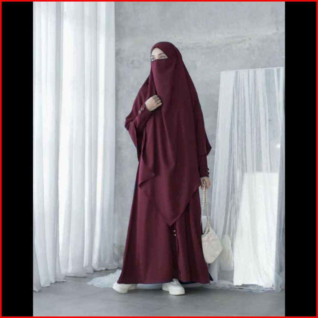 Gamis Abaya Muslimah Terbaru 2025 Set Khimar Niqob Crinkcle Airflow Premium Preasi Kancing