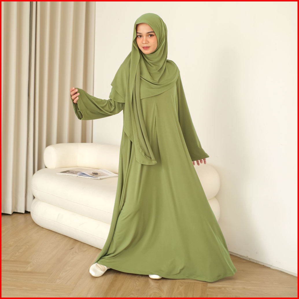 Lozy Hijab - Sadiqa Abaya Set Abaya Gamis Set Hijab Pashmina Haji Dan Umrah Bahan Jersey