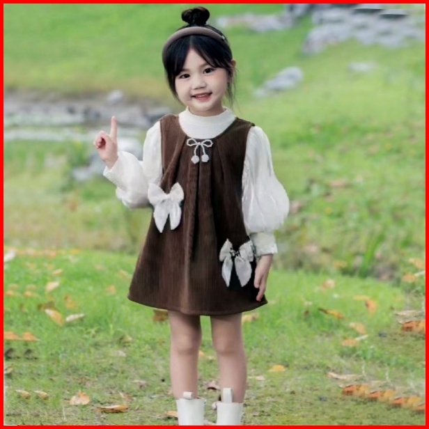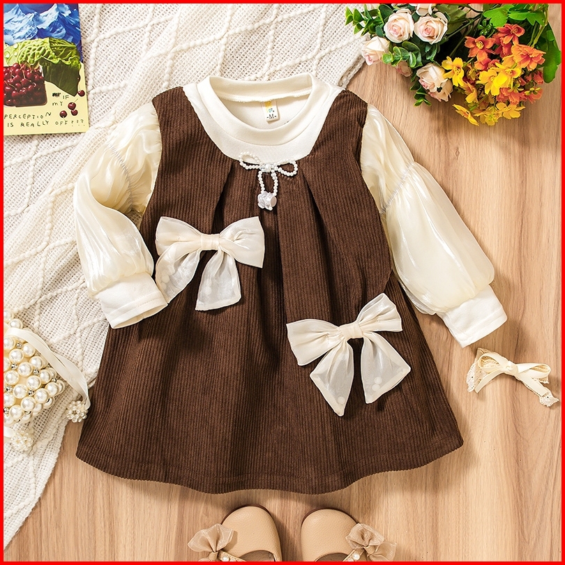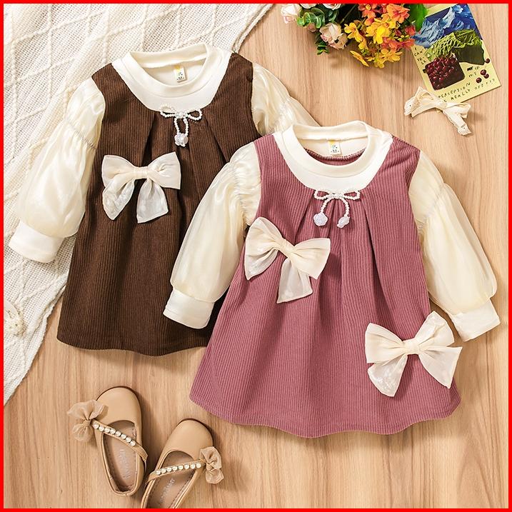 Rainbow Dress Baju Korea Anak Perempuan Usia 1-4 Tahun Gugurbaru Gaun Putri Lengan Panjang Import