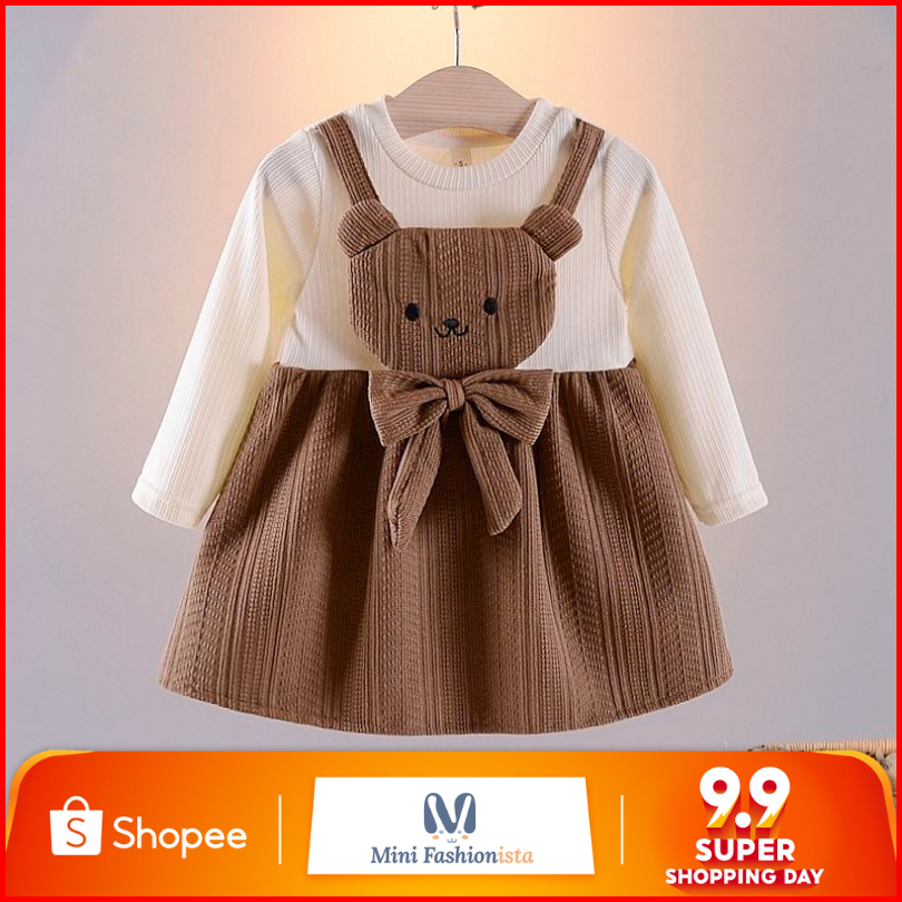 Dress Gaun Anak Perempuan Lengan Panjang Bahankatun Korean Style Usia 1-4 Thn