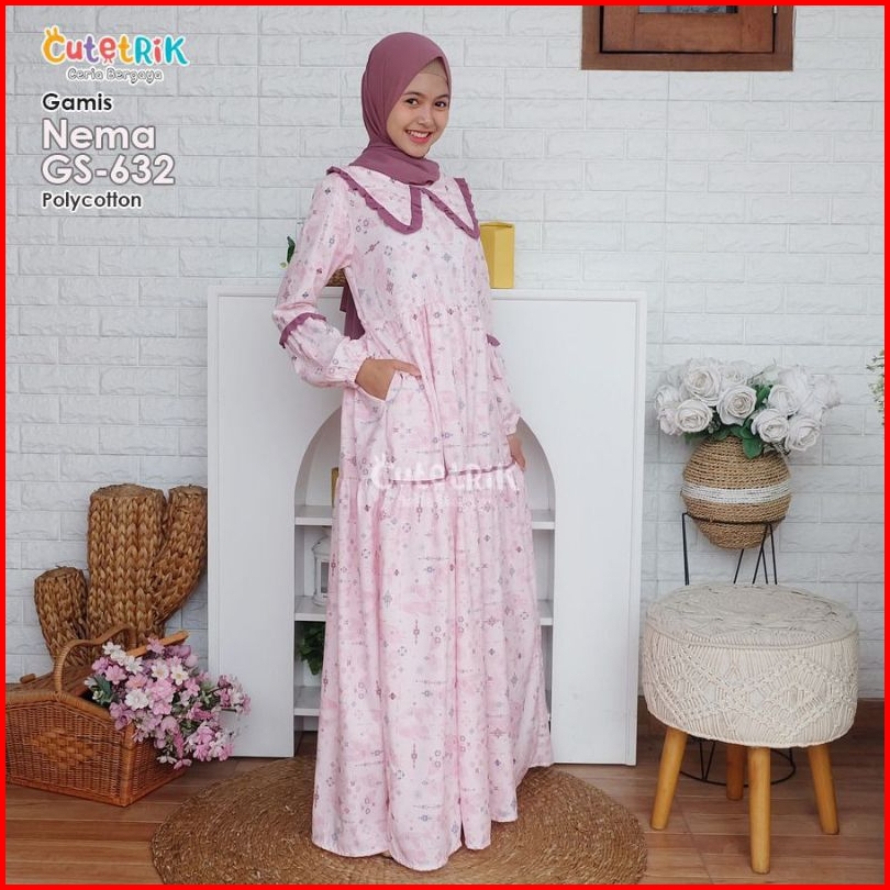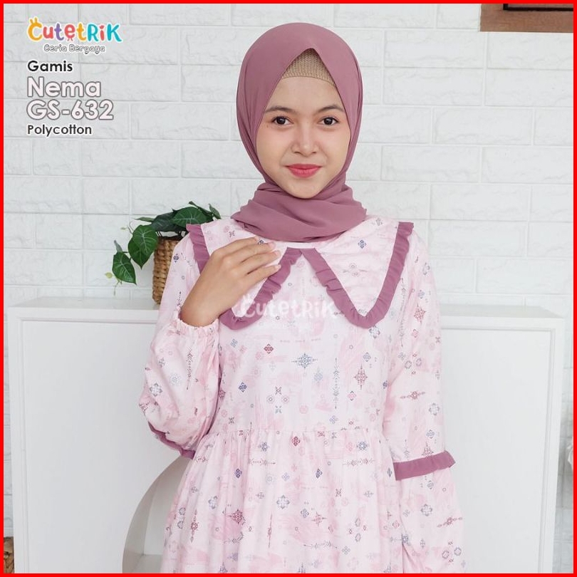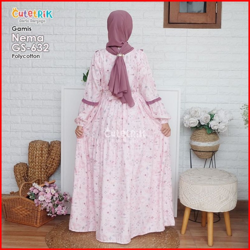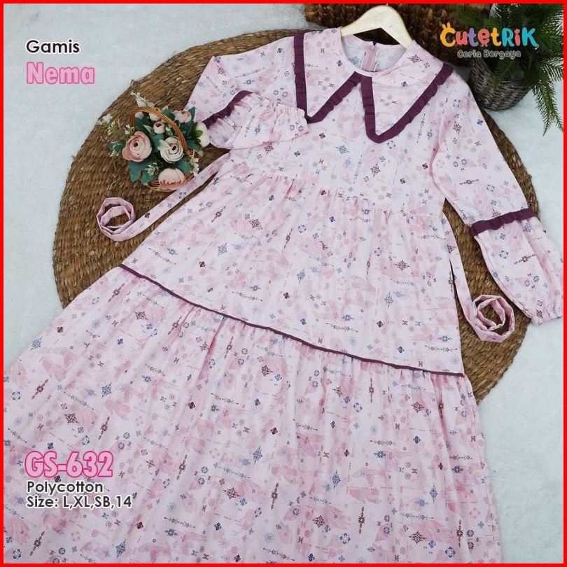 New Arrival - Cutetrik Gamis Anak Perempuan Nema Azna Motif Bunga Bunga Kotak Kotak Model Terbaru 2024 - Gamis Anak Tang
