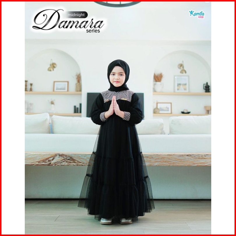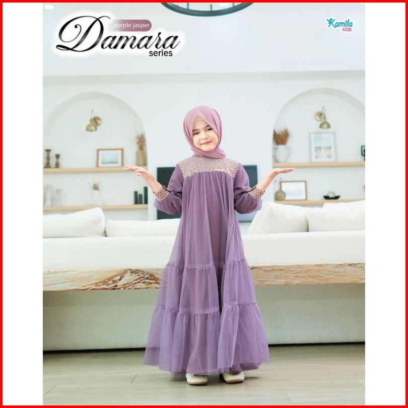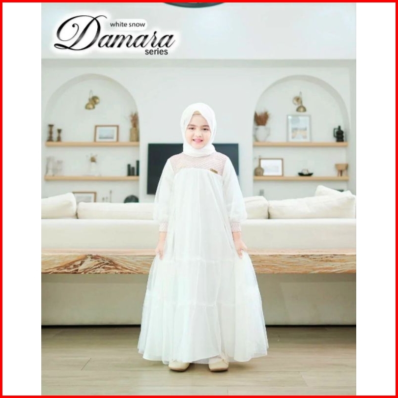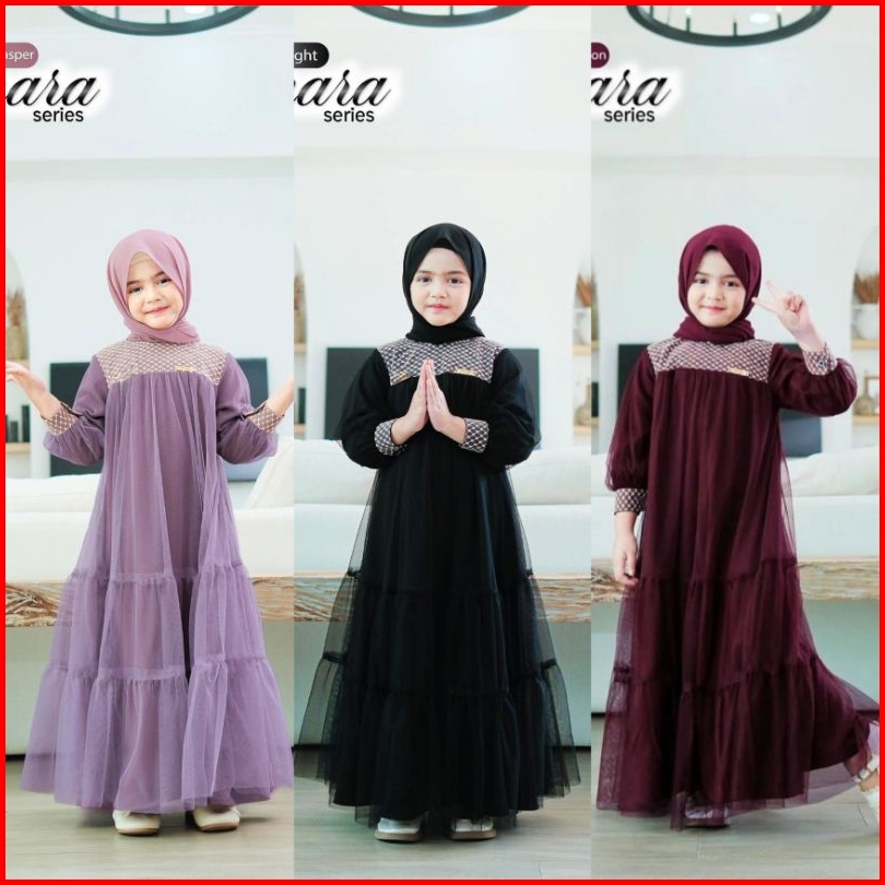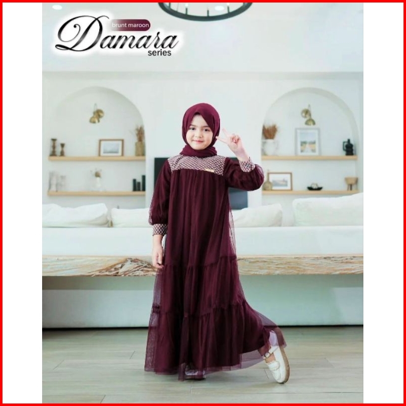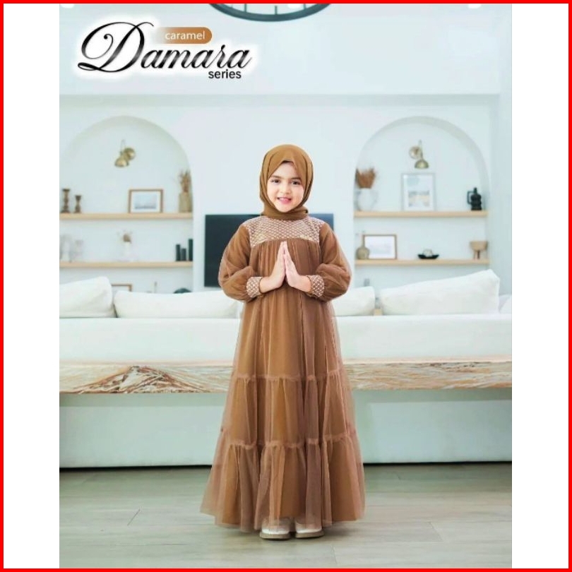 Damara Kids Tanpa Hijab Usia 3-10 Thn Uk M L Xl Bahan Shakila Mix Tille Gamis Anak Perempuan