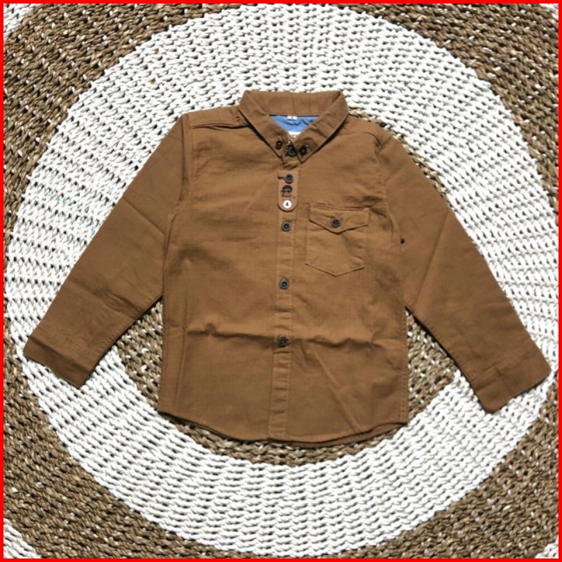 Kemeja Anak Lengan Panjang Warna Latte Estimasi Usia 1-16 Tahun Bahan Katun Uniqlo Premium