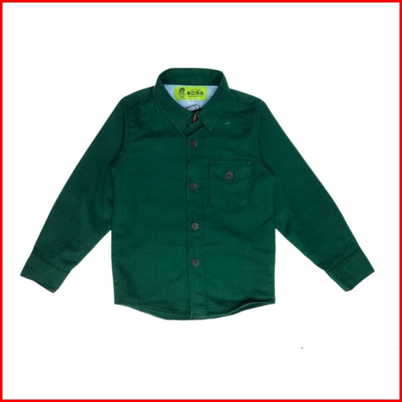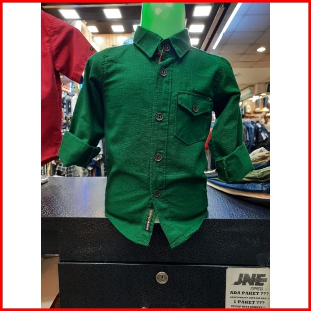 Kemeja Anak Laki-laki Hijau Botol Katun Uniqlo Premium Umur 2 Sampai 16 Tahun
