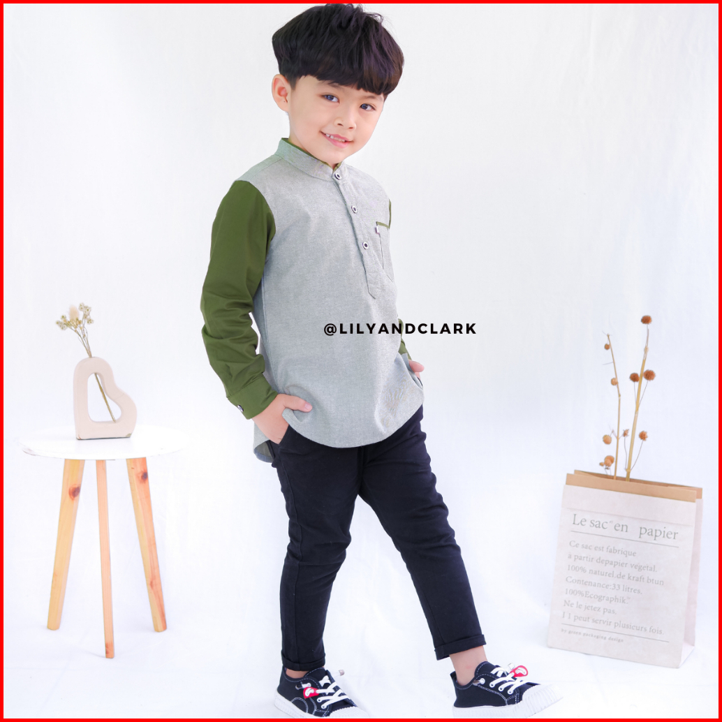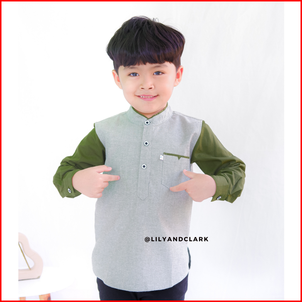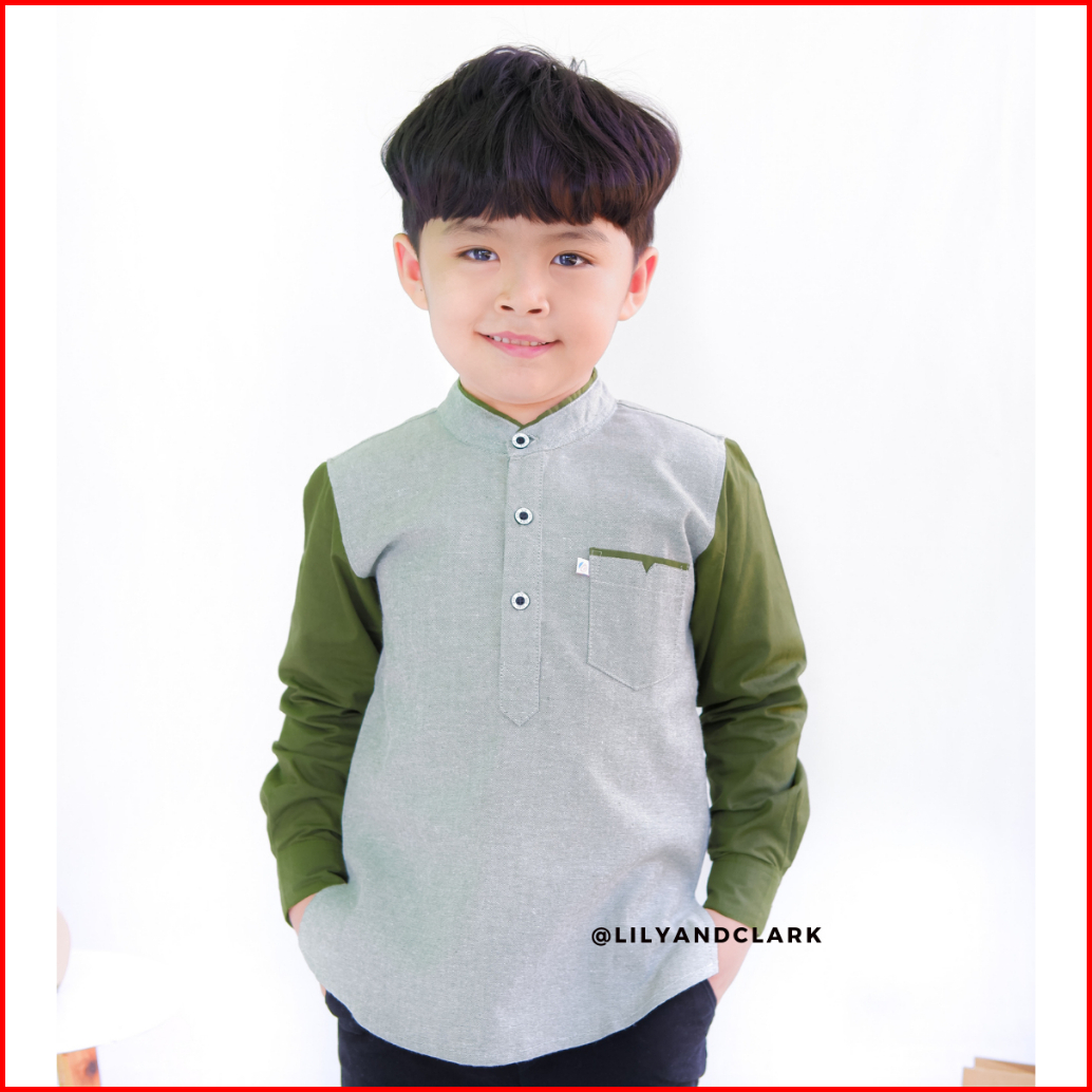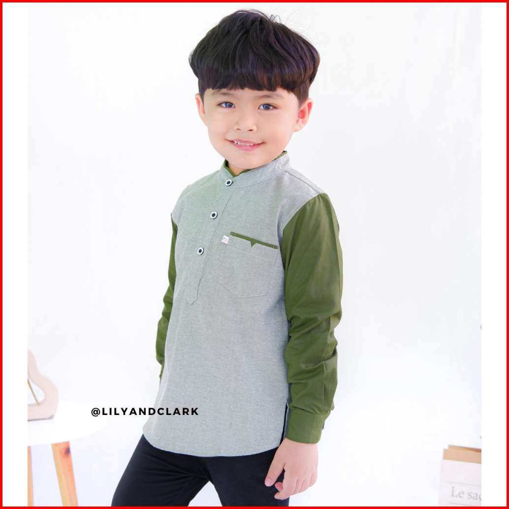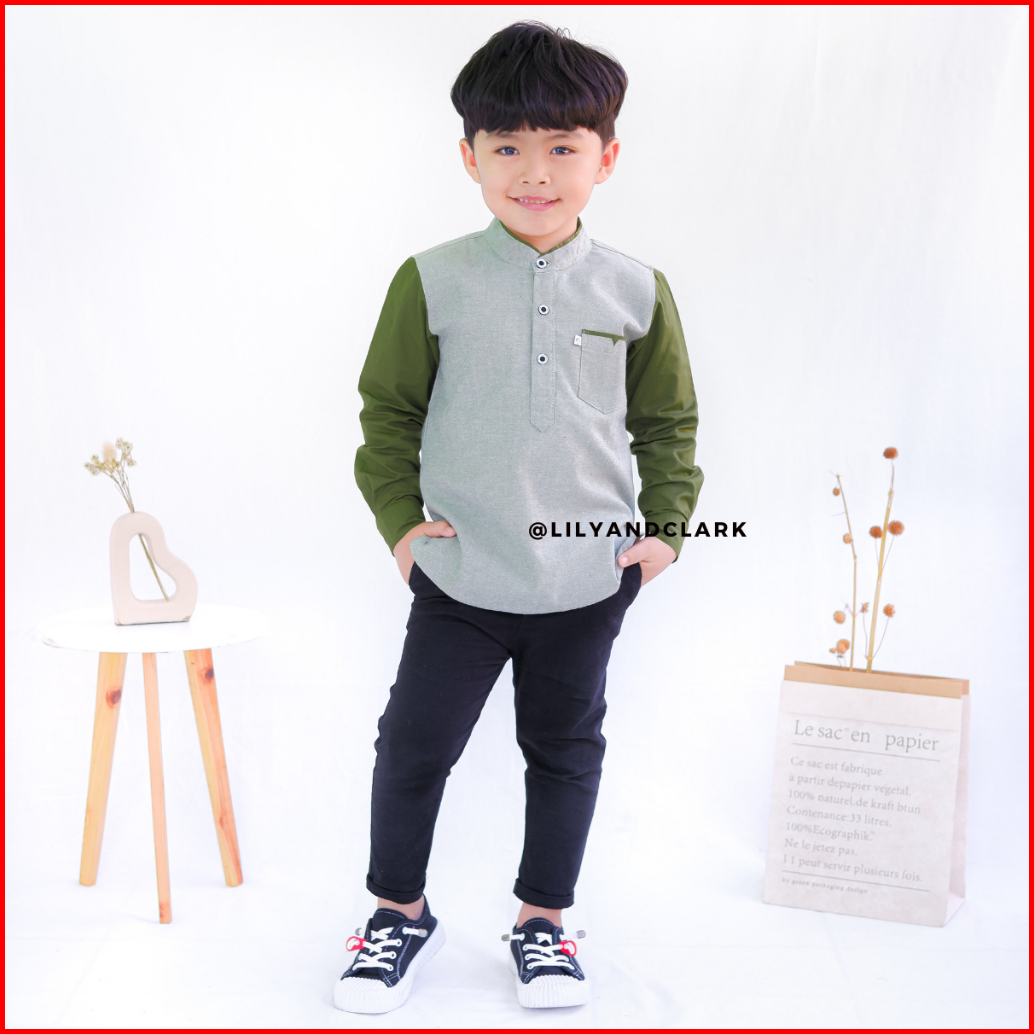 Lily And Clark Kemeja Anak Laki Laki Lengan Panjang Kkp12 Warna Hijau Combinasi Army