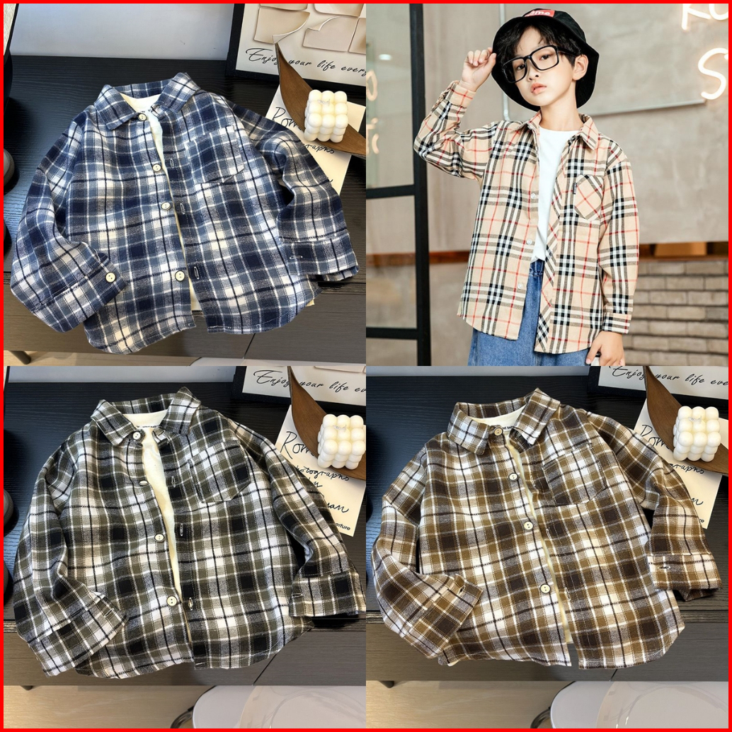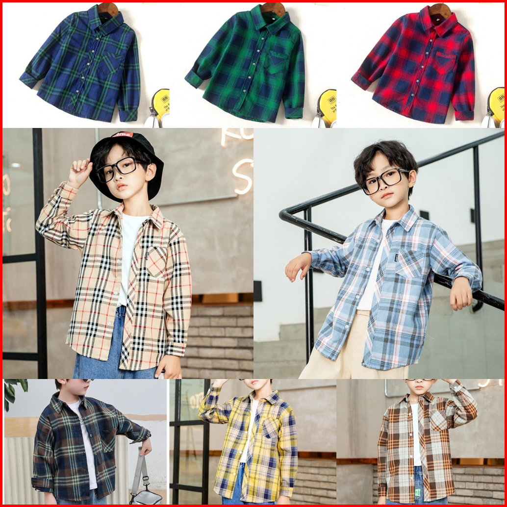 Atasan Kemeja Panjang Anak Kotak-kotak Import 0 - 10 Tahun