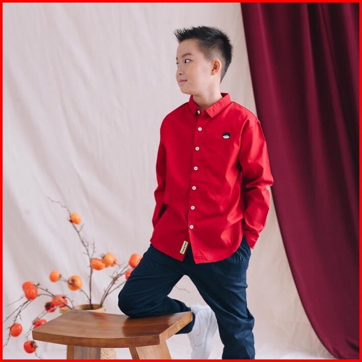 Heytimmy - Kemeja Anak Laki Laki Lengan Panjang - Bone Bold Color
