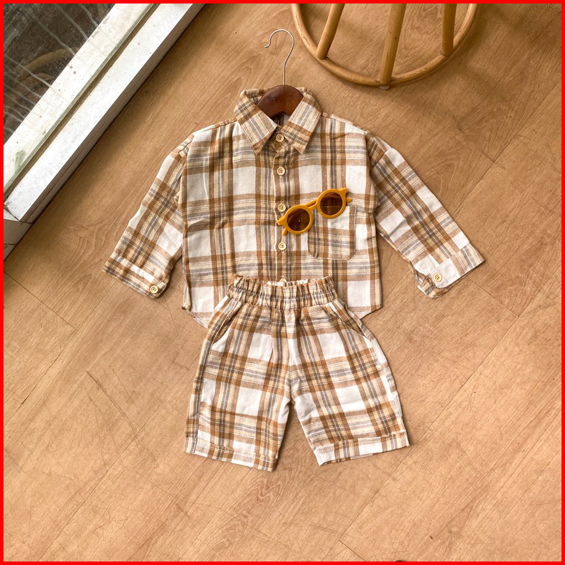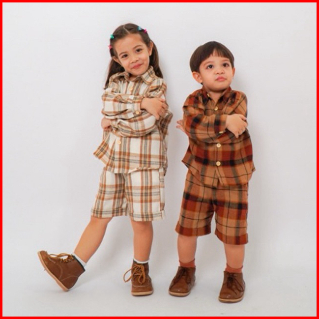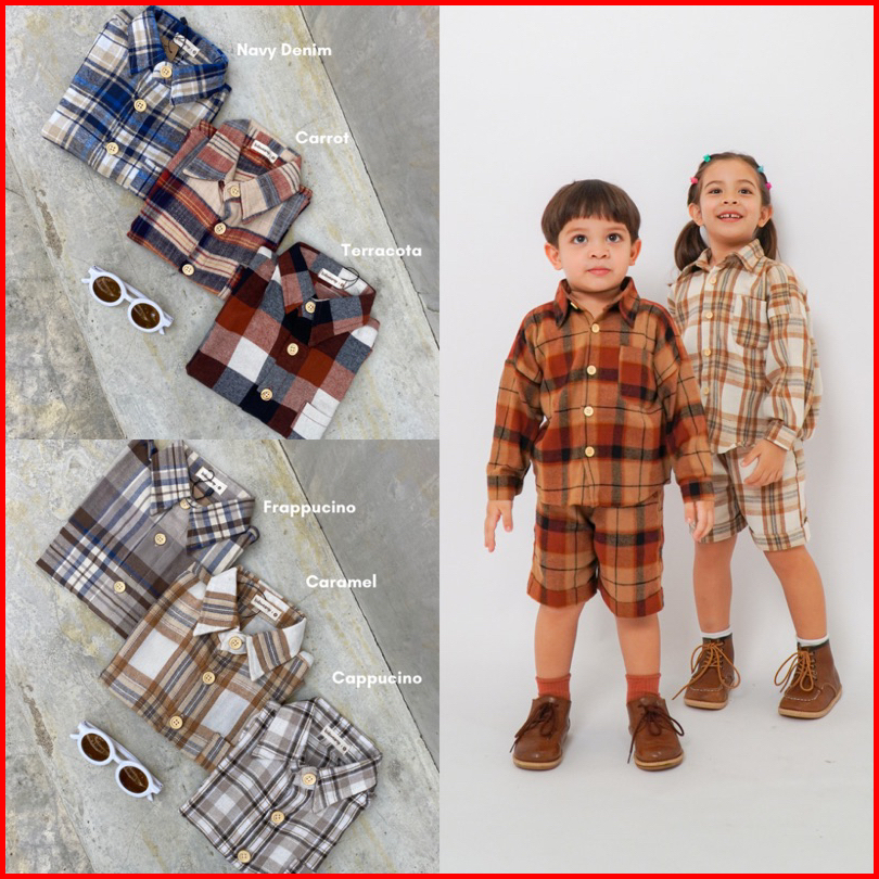 Kidswearup Flannel Shirt Hong Banjang - Kemeja Flannel Anak Oversized Unisex - Setelan Flannel Anak