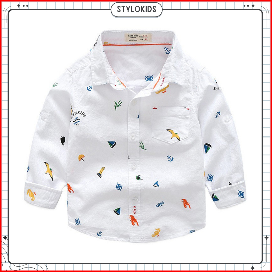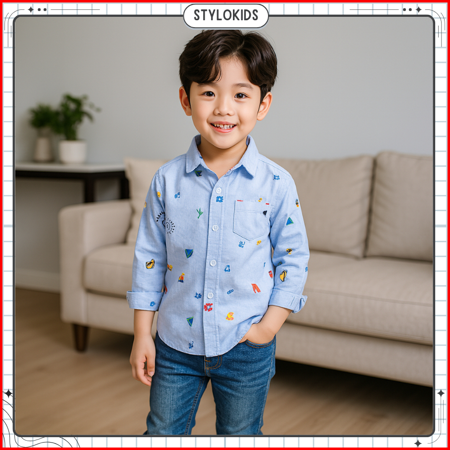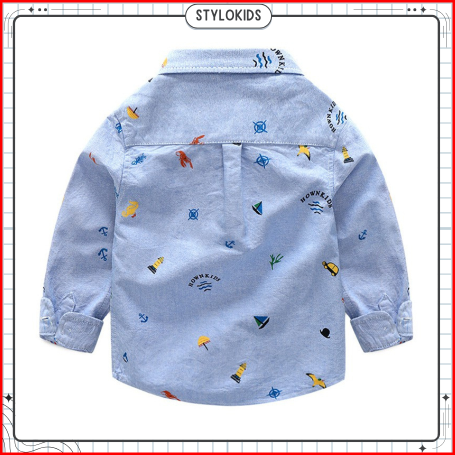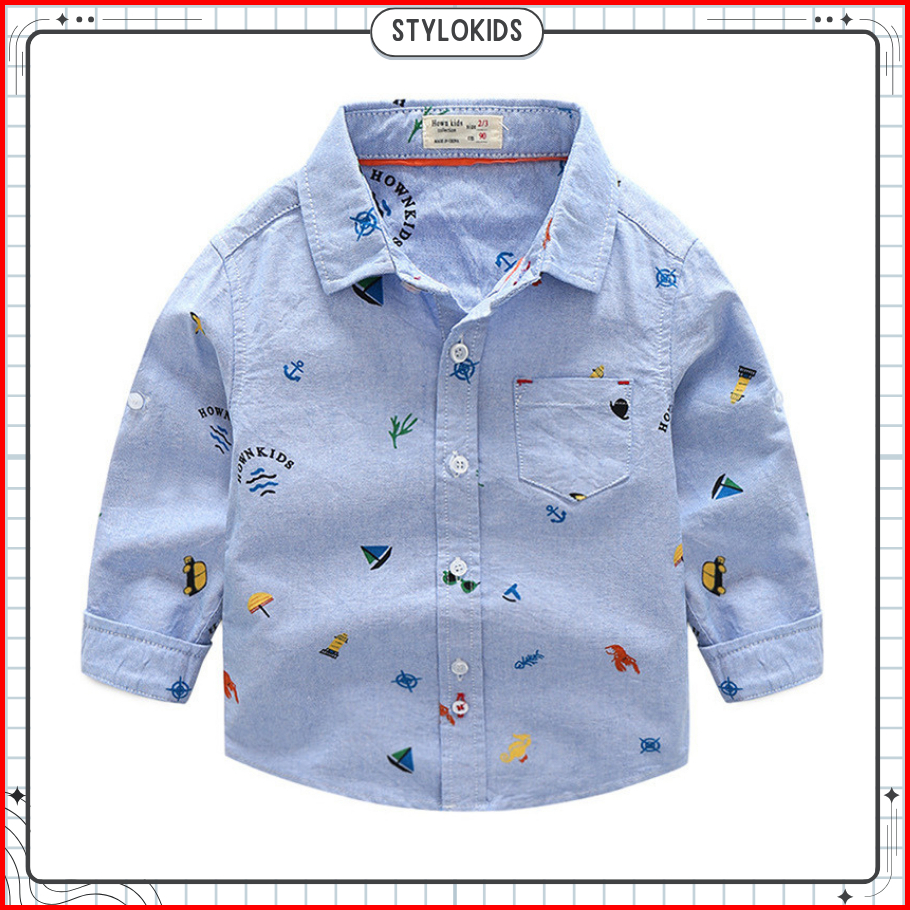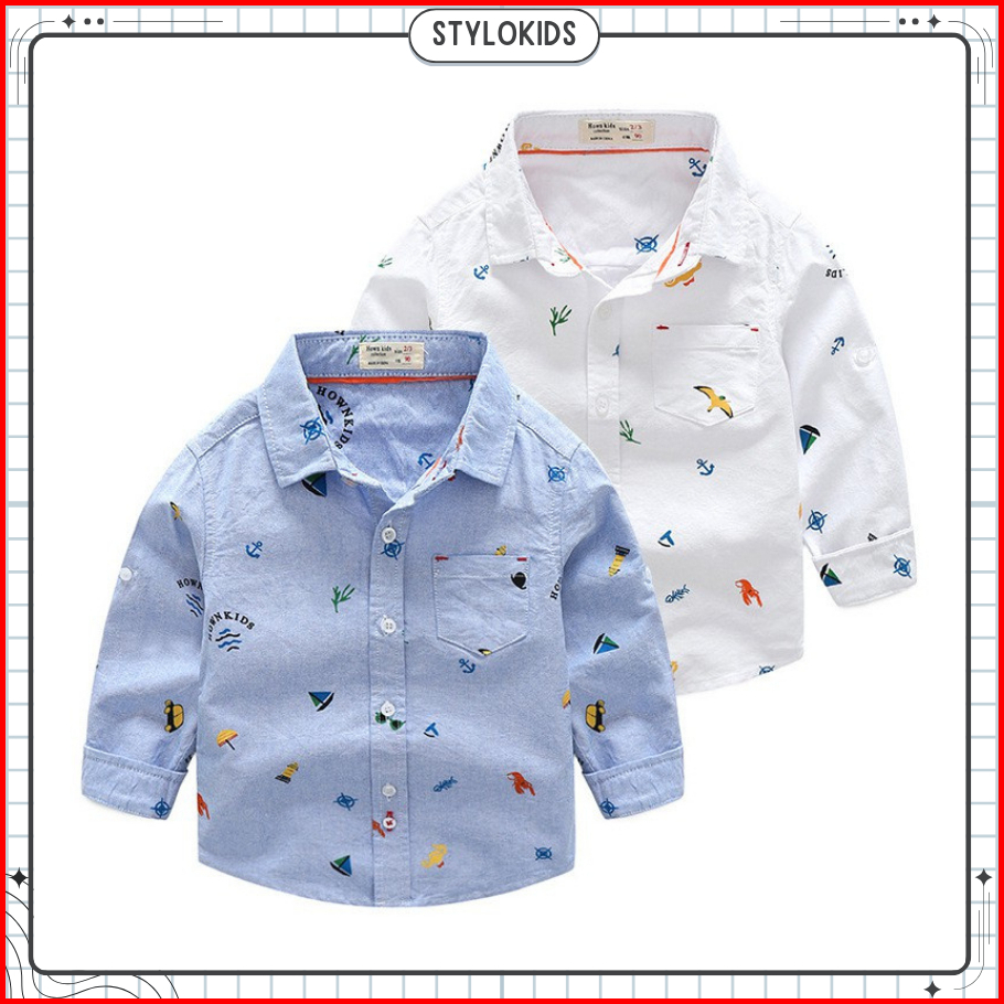 Stylokids Baju Shirt Kemeja Anak Laki-laki Lengan Panjang Warna Biru Dan Putih