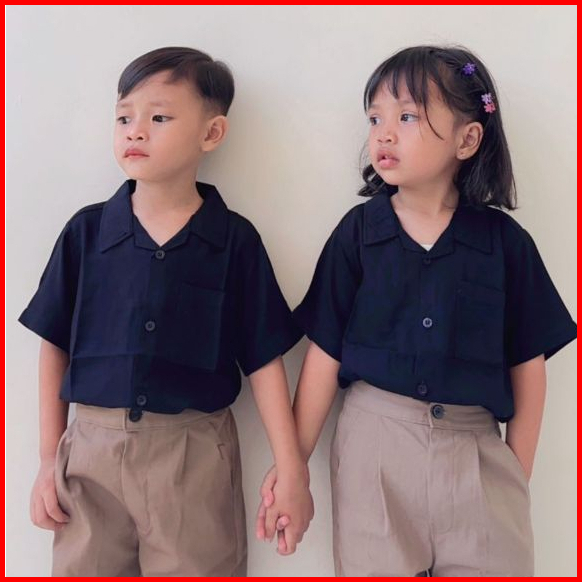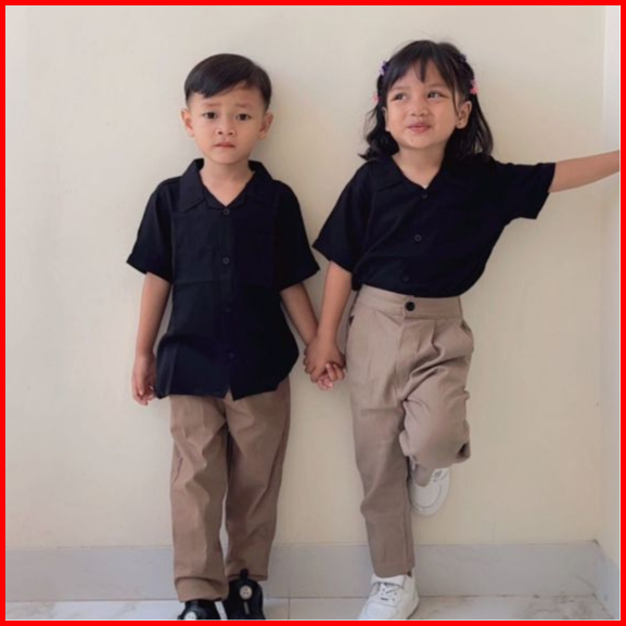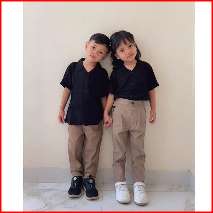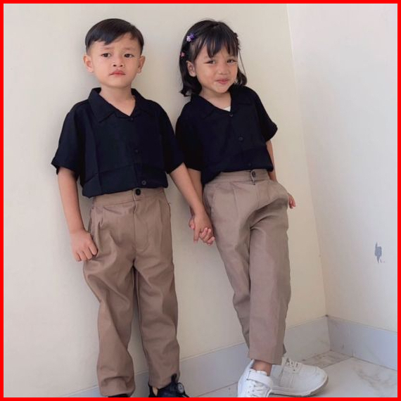 Follux - Oneset Korean Style Kemeja Polos Celana Chinos Unisex Usia 1-10 Tahun