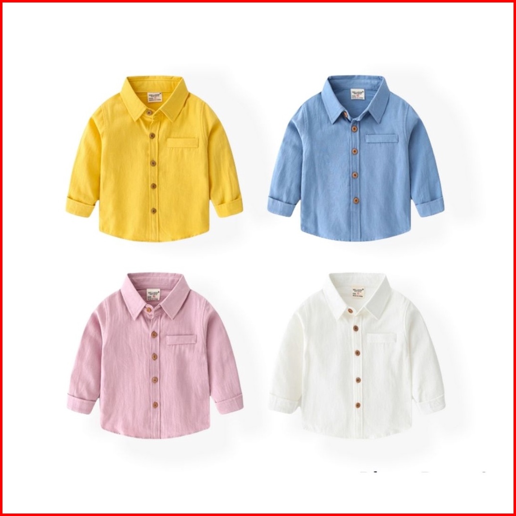 Littledino - Kemeja Anak Bayi Lengan Panjang Poket Lurus