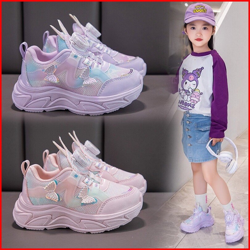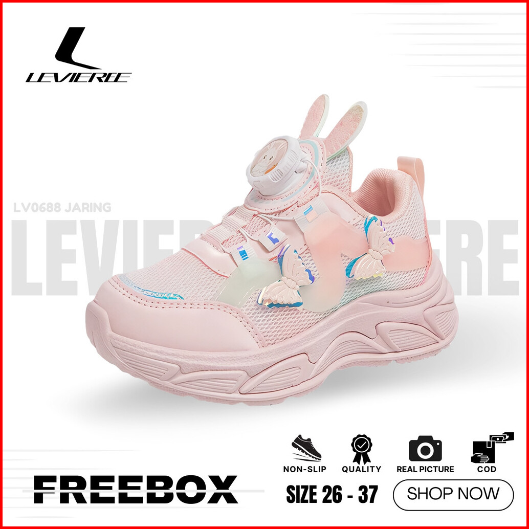 Lvr Free Box Size 26-35 Sepatu Sneakers Anak Perempuan Sport Kids Shoes Motif Butterfly Lv0688