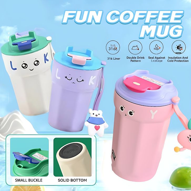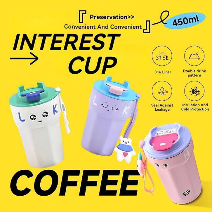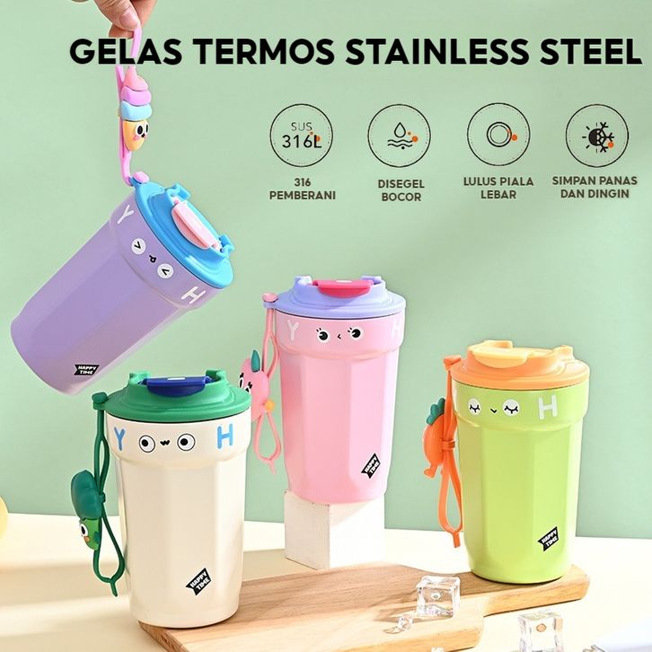 TUMBLER BOTOL MINUM MUG KOPI TEH STAINLESS STEEL LUCU 450ML CAMPAIGN INERLESS STEEL TUMBLER STAINLESS TAHAN DINGIN PANAS