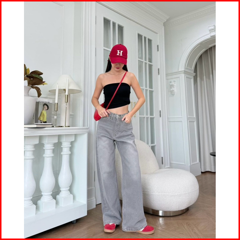 Thegirlhouse - Kulot Highwaist Loose Jeans Baggy Smoke Grey