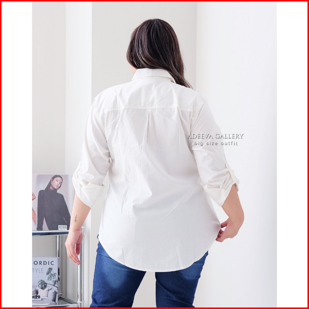 Adeeva Kemeja Polos Jumbo Atasan Wanita Slimfit Katun Casual Kerja Kantor Jumbo
