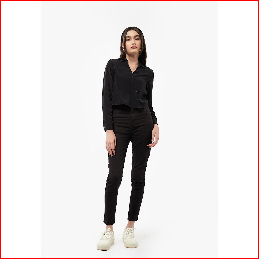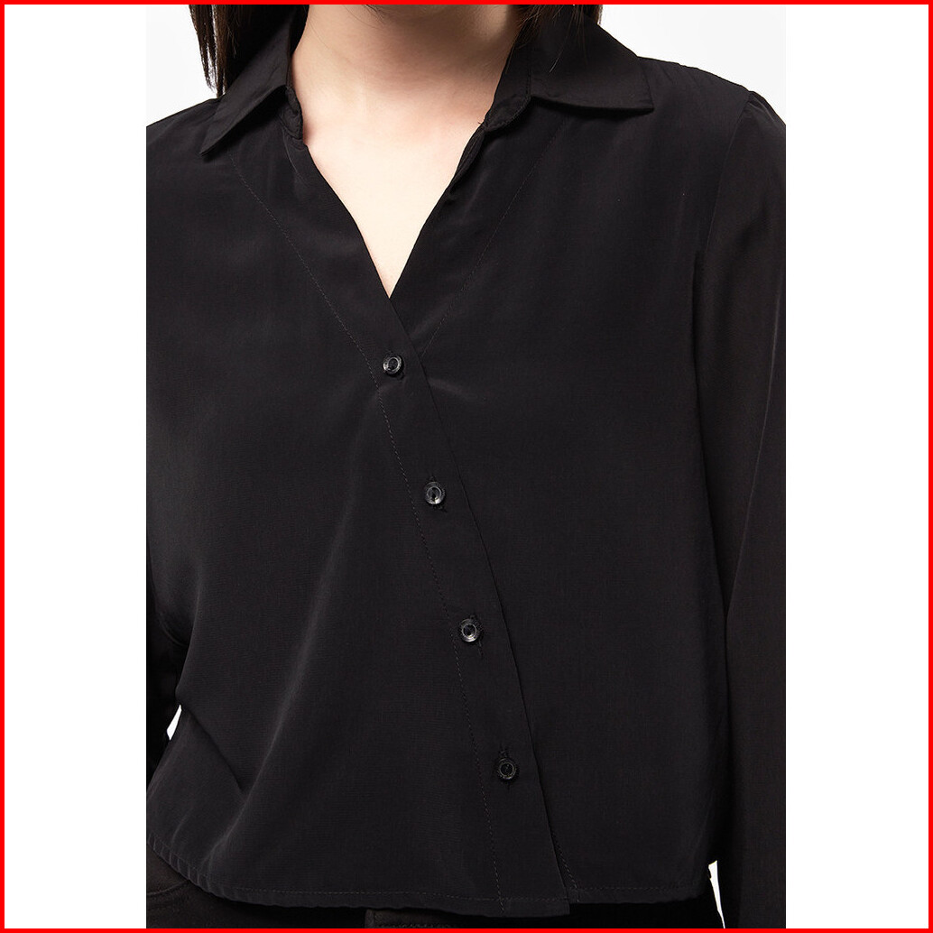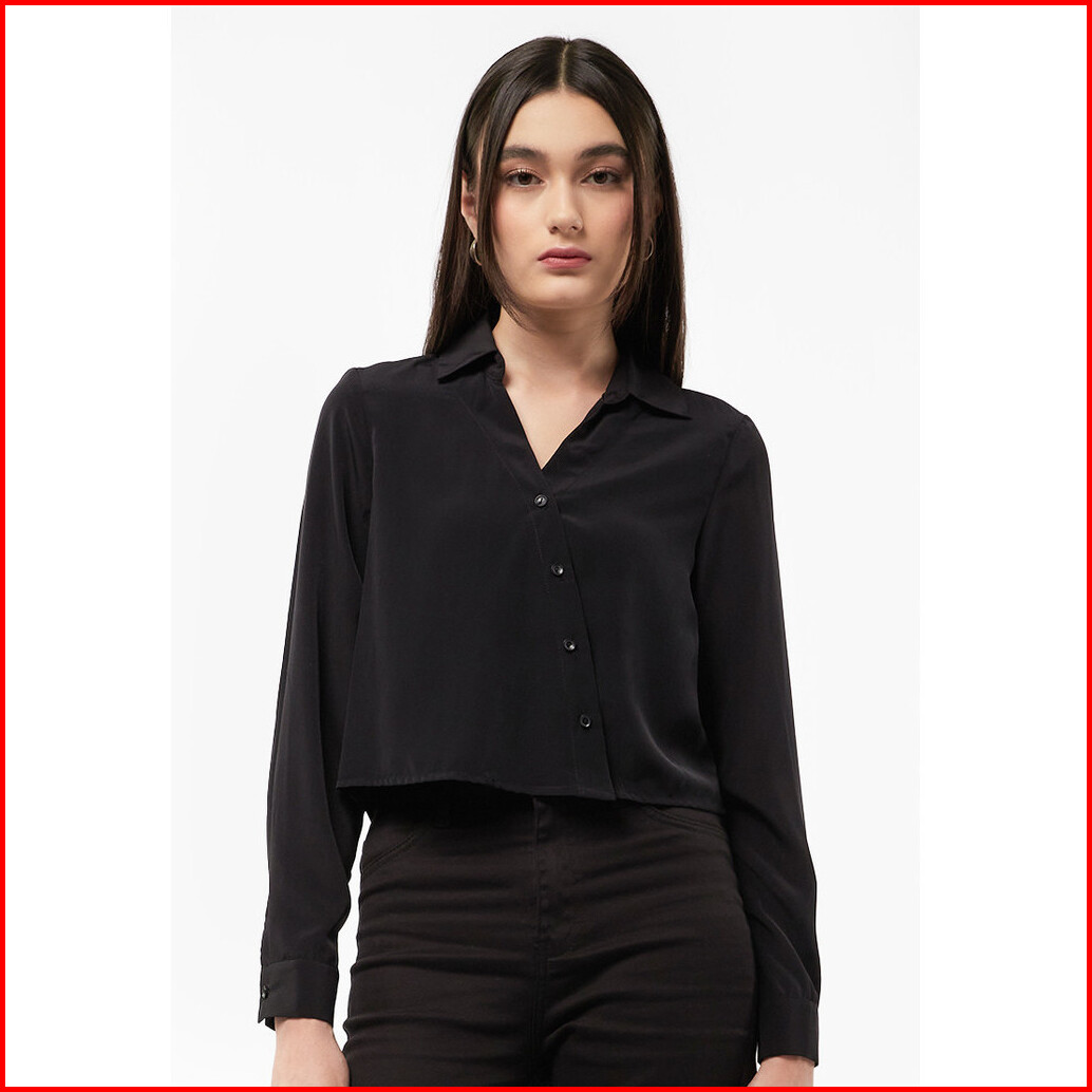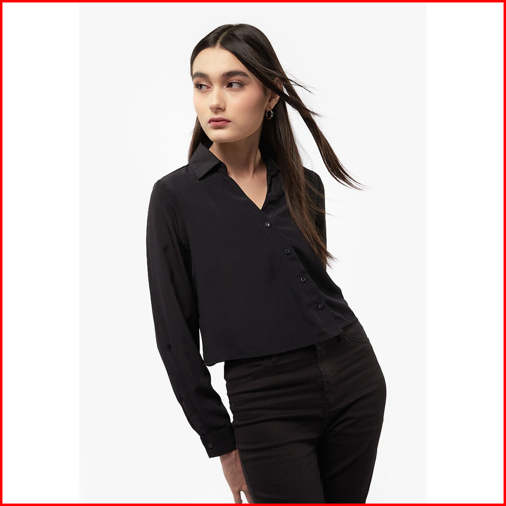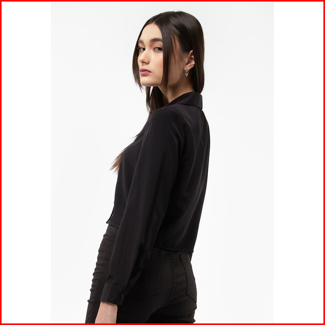 Colorbox Long Sleeve Satin Crop Shirt Black