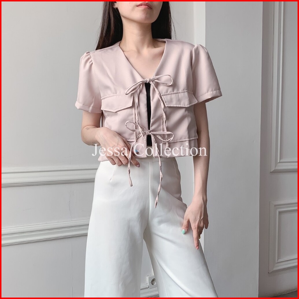 Top Cotton Coquette Evelin Fg Atasan Wanita Tangan Pendek Motif Polos Casual Simple