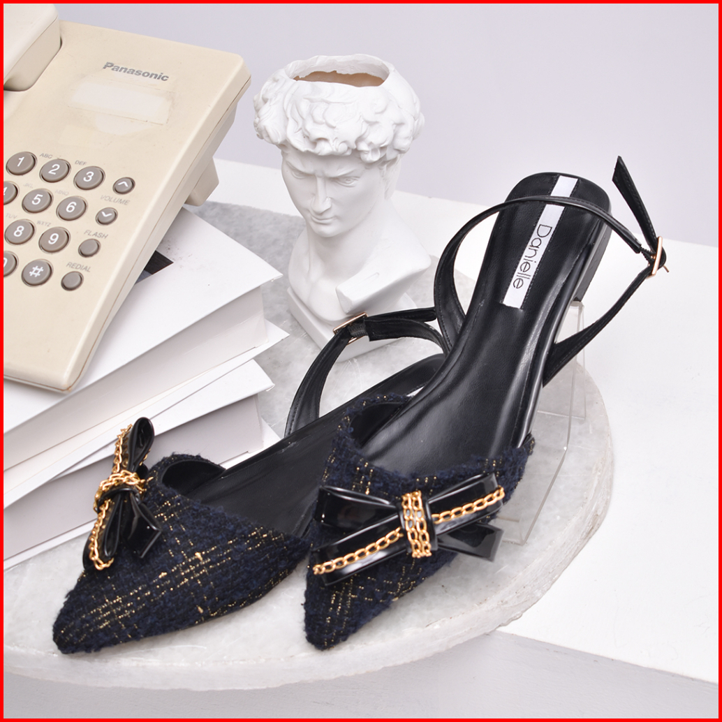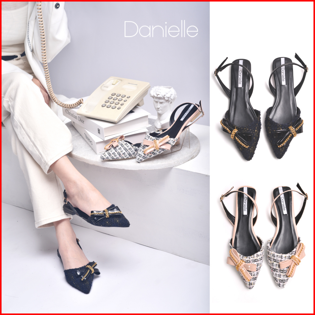 Danielle Flatshoes Empuk Nyaman Sepatu Wanita Premium Kuliah Kerja Kondangan Agnes Hitam Heels 1cm Pita
