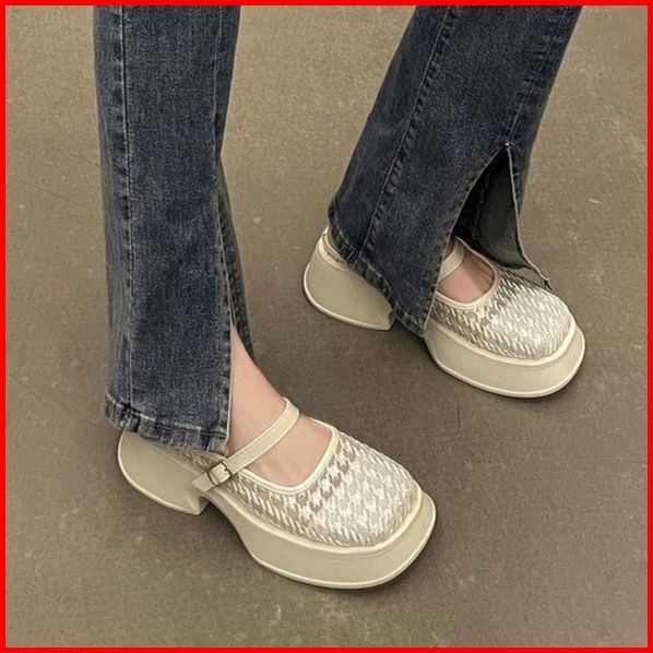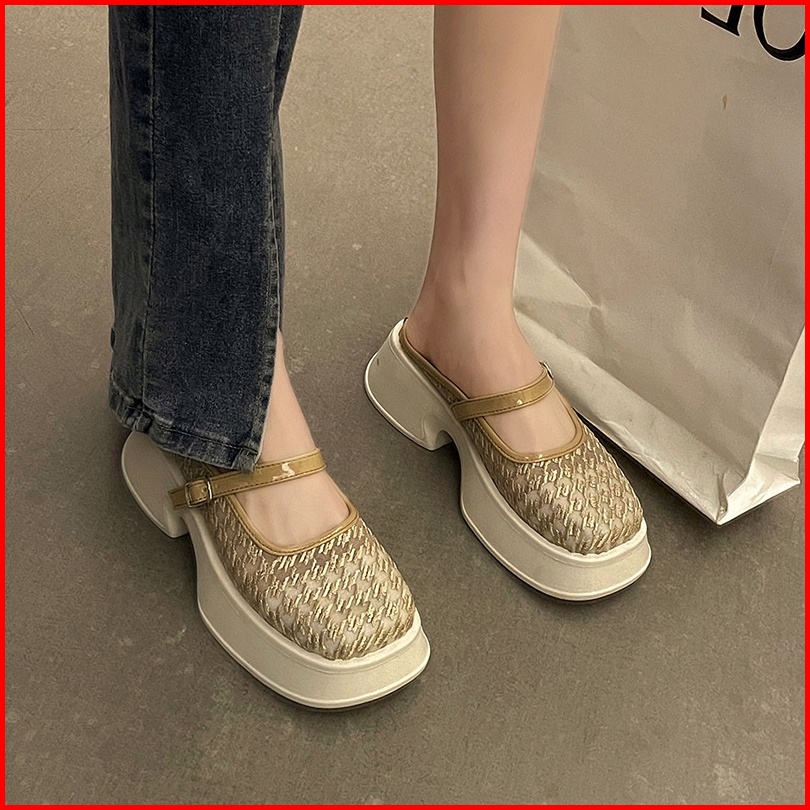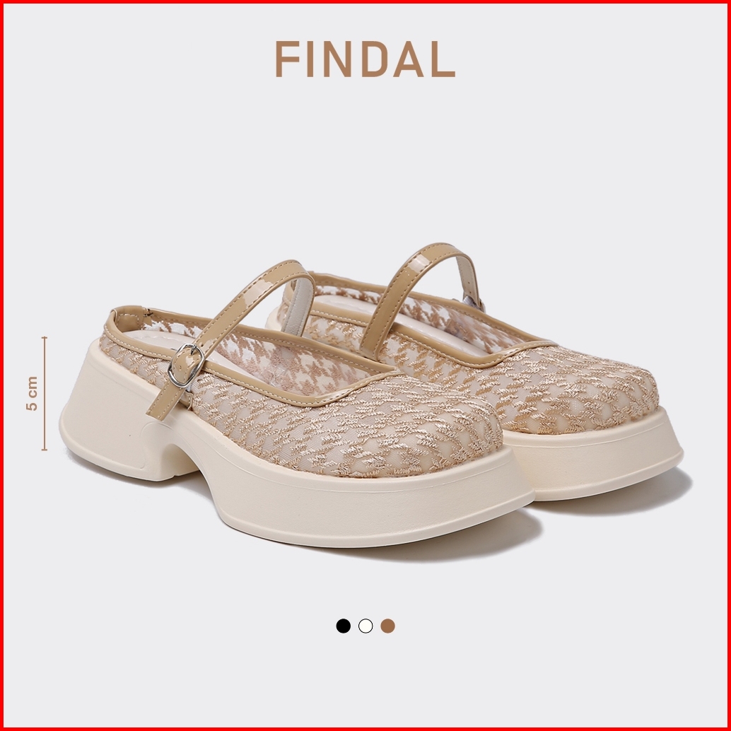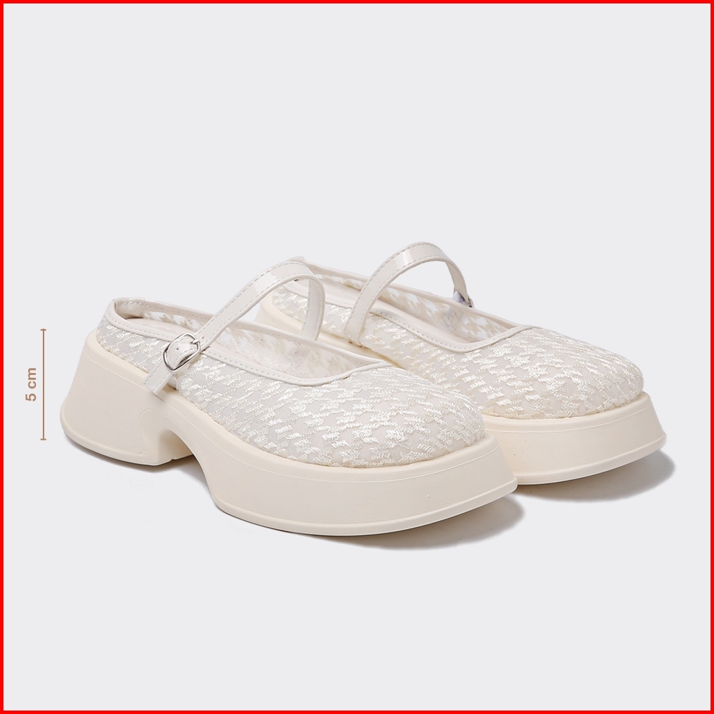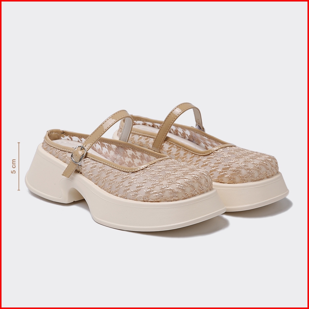 Findal Sandal Wanita Mules Wedges 4cm Mary Jane Kasual Latte 36-40 Di-090